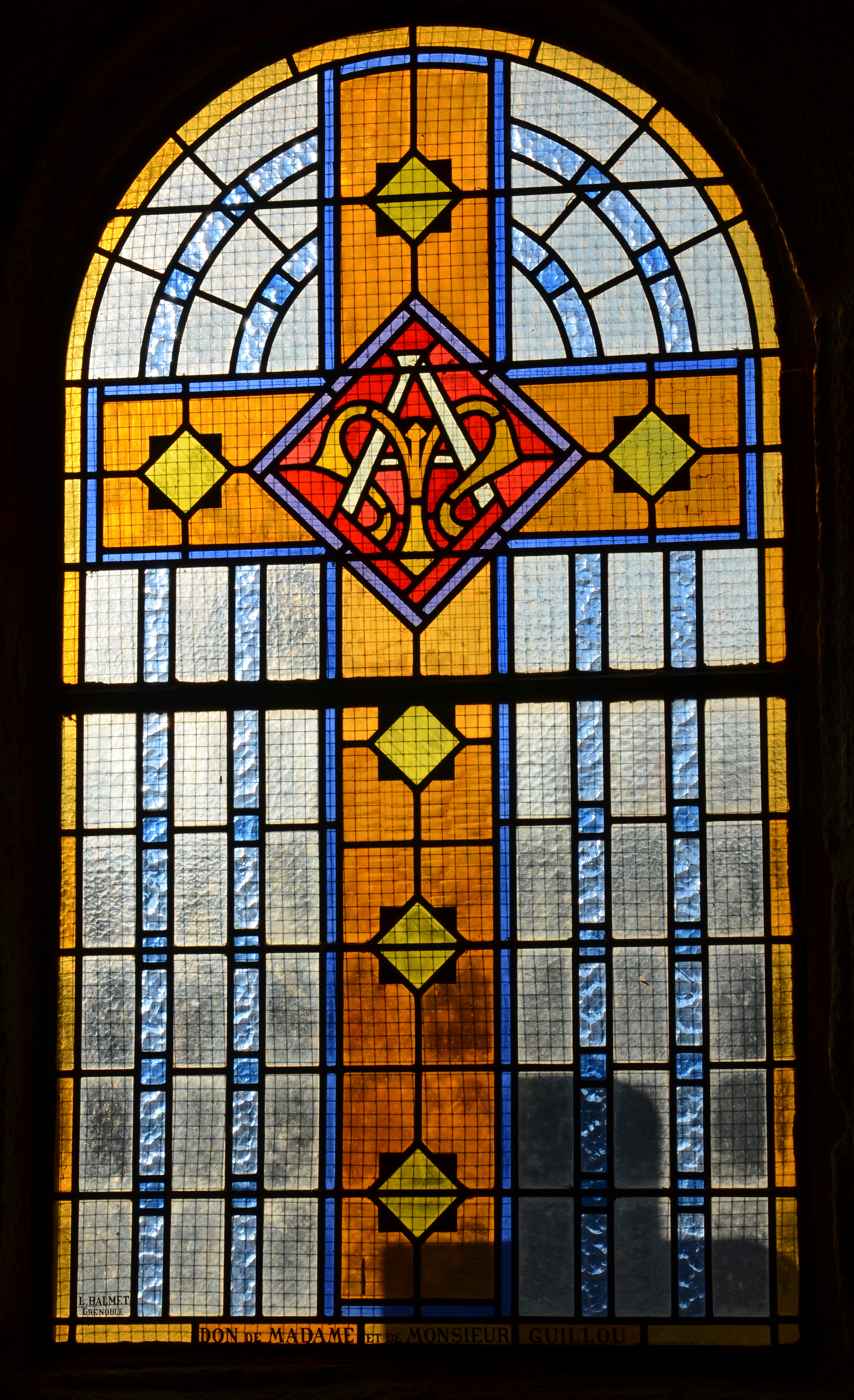 Mantallot, le bourg : église paroissiale Saint Médéric, vue intérieure, vitrailImmatriculation