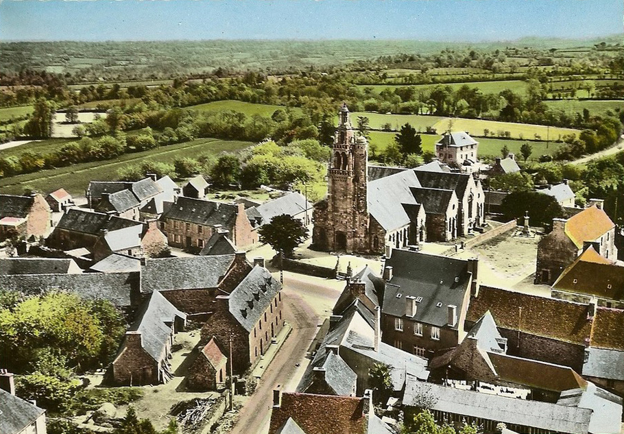 Ploubezre : le bourg et l'église paroissiale Saint-Pierre, vue générale oblique depuis l'ouest, carte postale (collection particulière)Immatriculation
