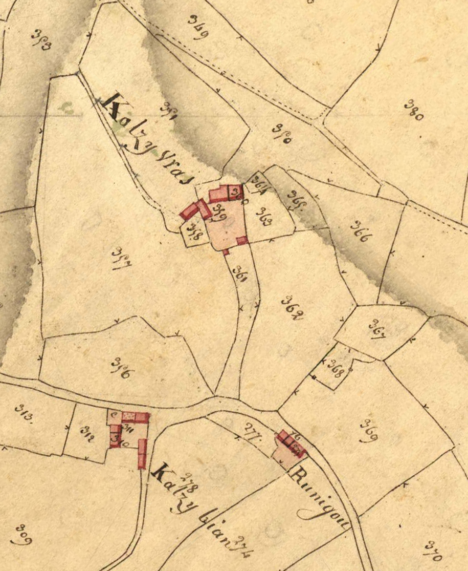 Extrait du cadastre ancien de la commune de Ploubezre, 1826 : manoir de KeralzyImmatriculation