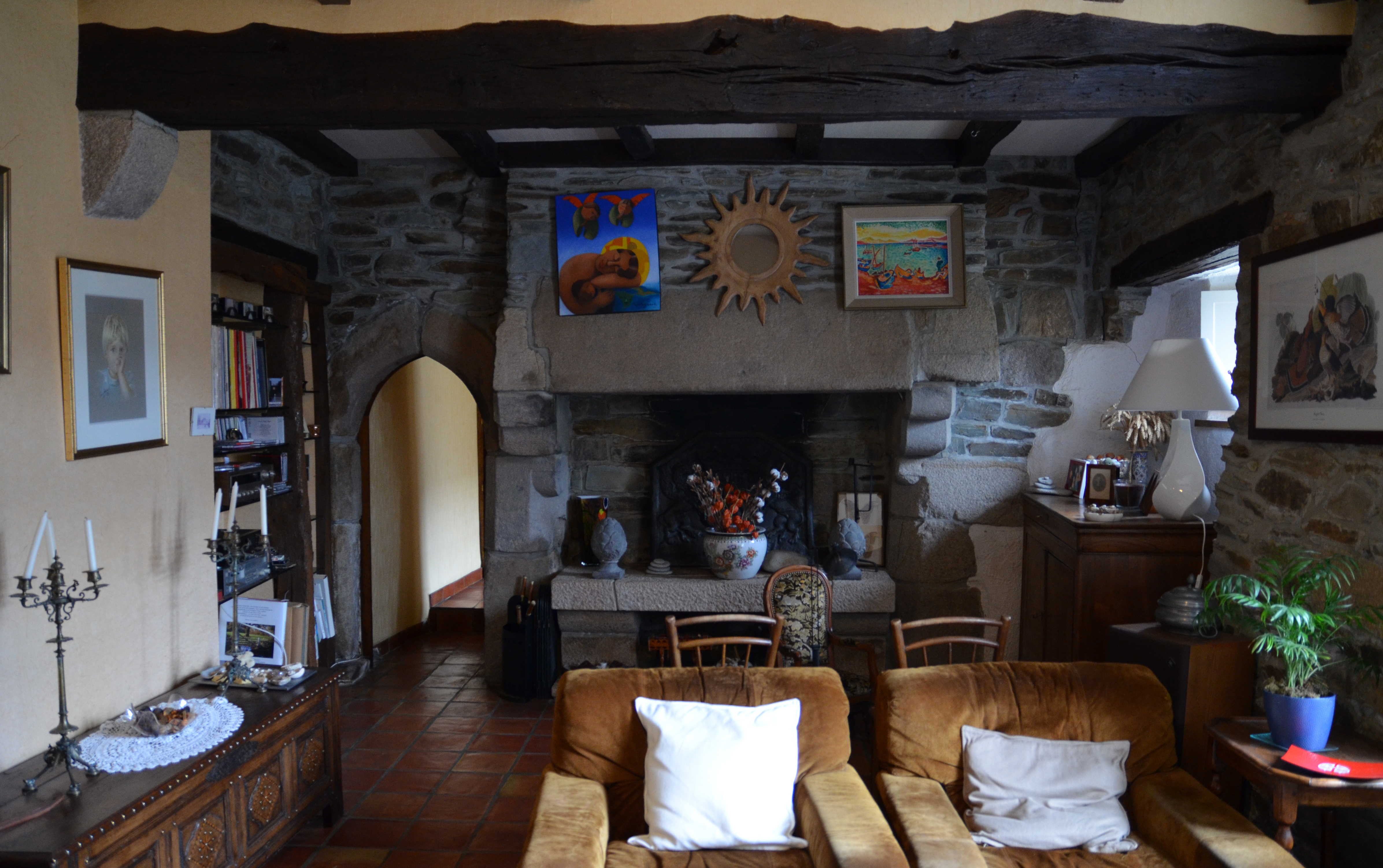 Ploubezre, Rosalic : manoir, salle basse avec cheminée et porte en arc brisé permettant la communication avec la partie sudImmatriculation
