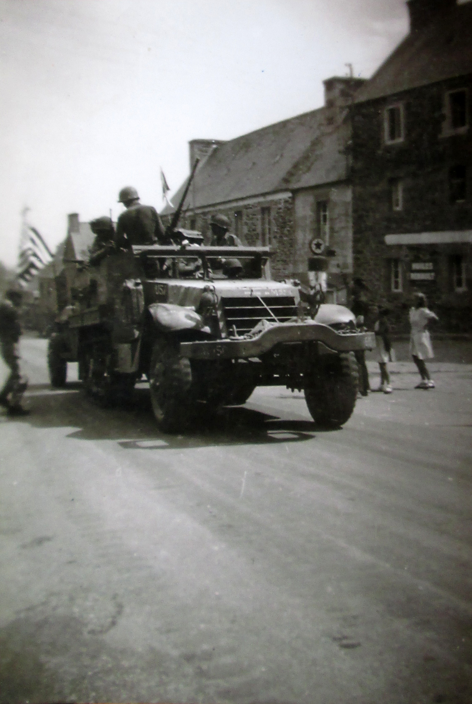 Langoat, le bourg : le passage des troupes américaines en août 1944, photographie (collection particulière de Jean Le Grand à Langoat)Immatriculation