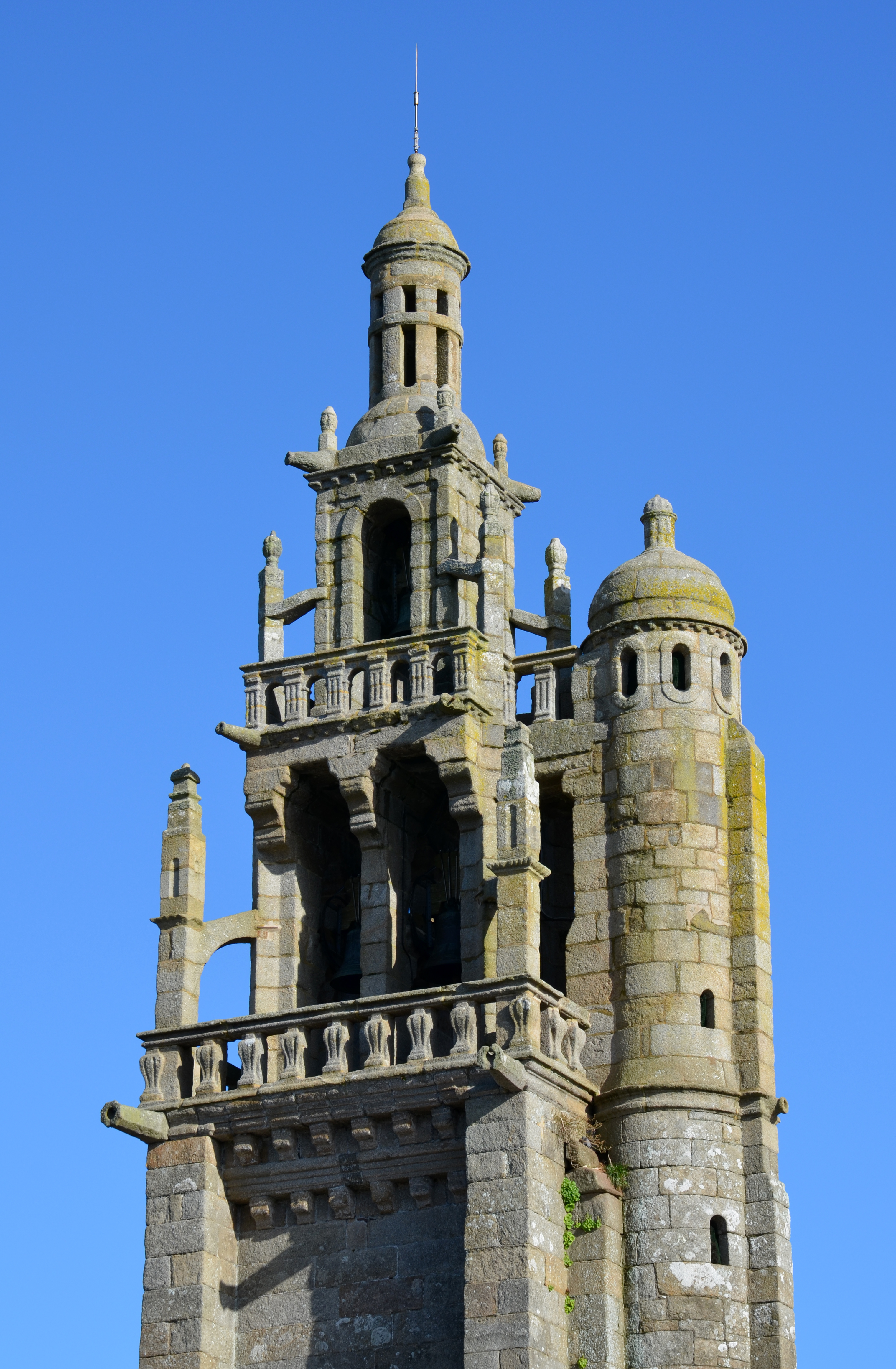 Ploubezre, le bourg : église paroissiale Saint-Pierre, vue du clocher depuis l'ouestImmatriculation