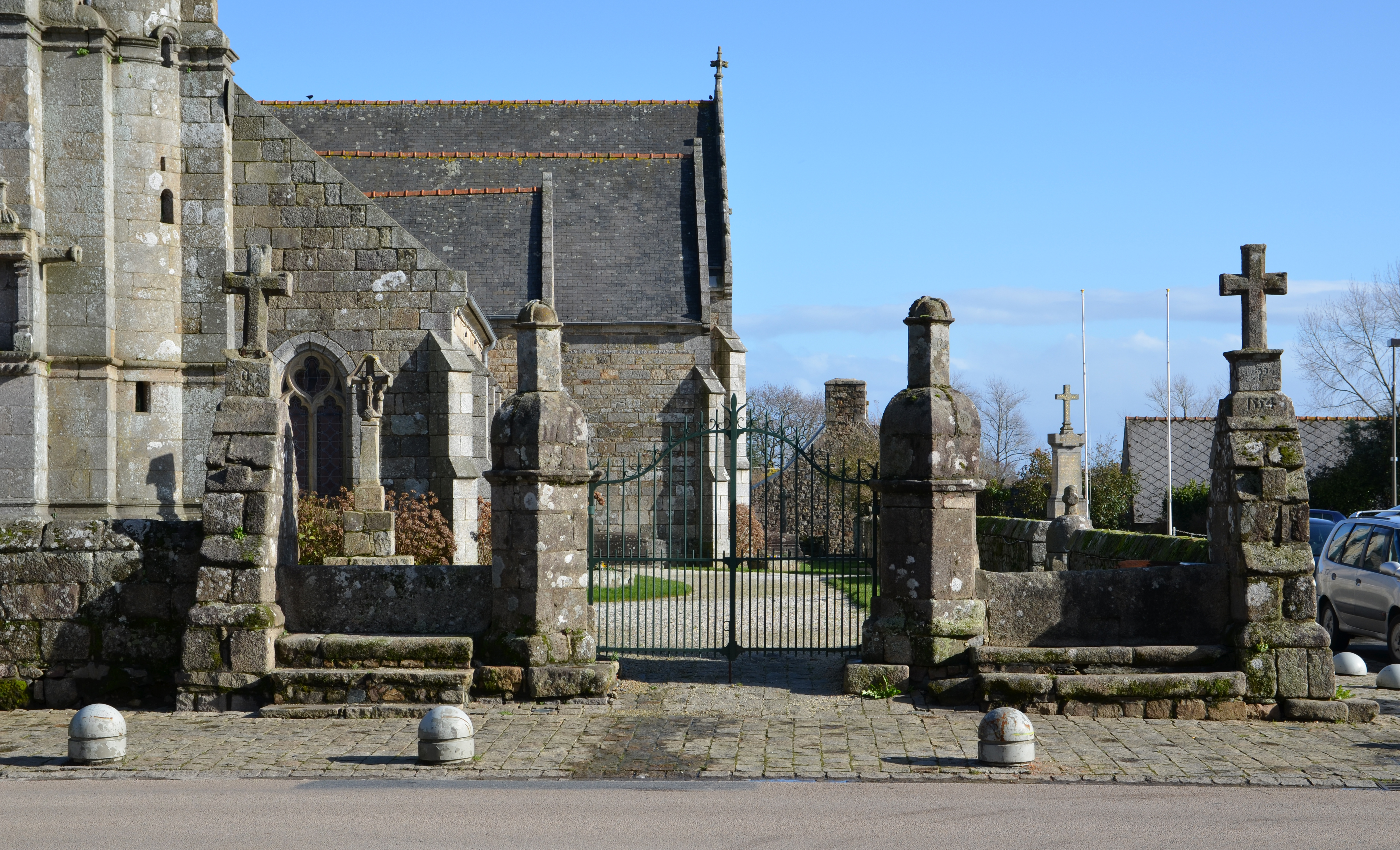 Ploubezre, le bourg : cimetière de l'église paroissiale Saint-Pierre, entrée ouest, vue généraleImmatriculation