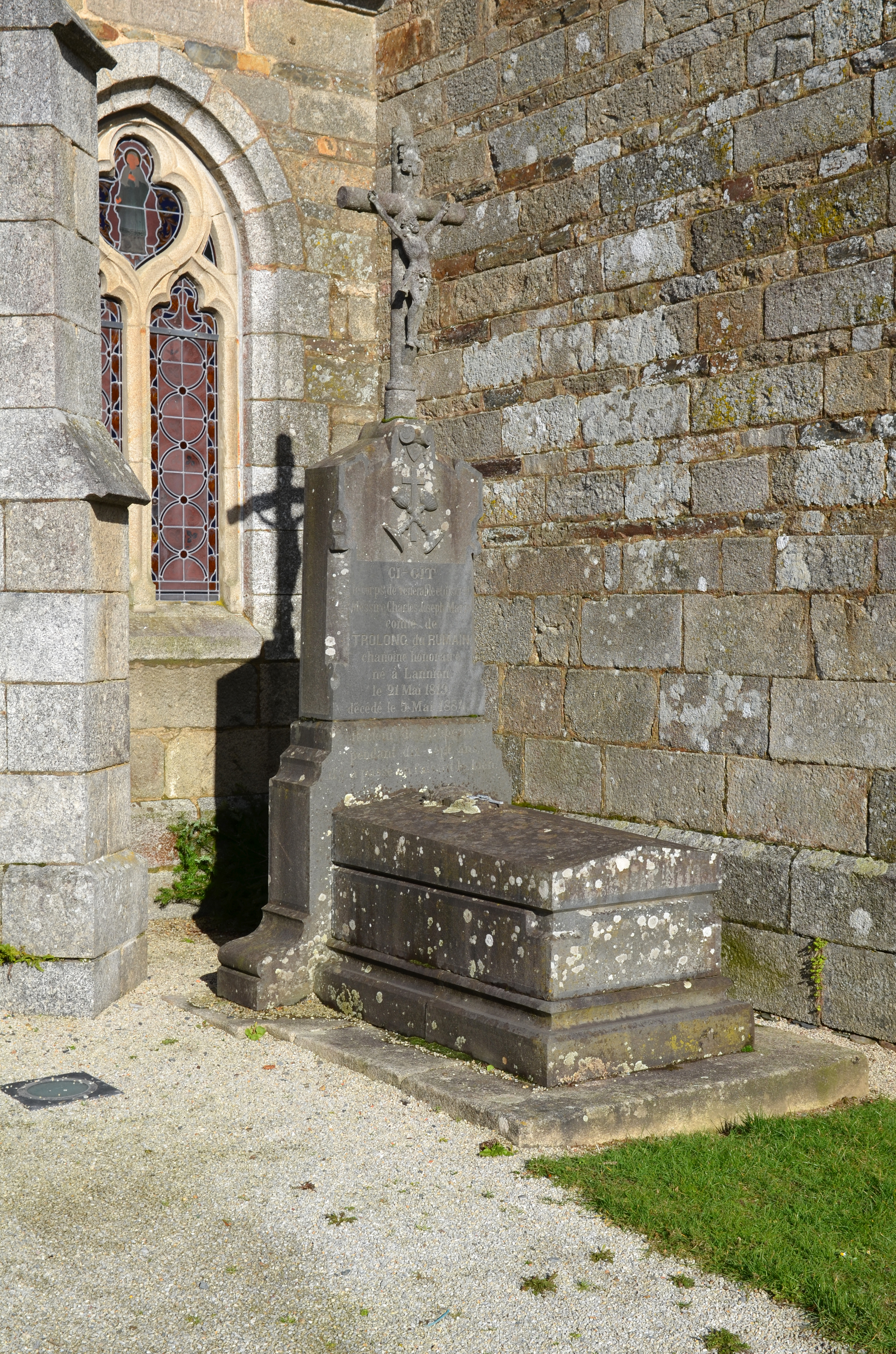 Ploubezre, le bourg : cimetière de l'église paroissiale Saint-Pierre, tombeau de Charles Joseph Marie, comte de Trolong du Rumain, recteur de Ploubezre pendant 17 ans, chanoine honoraire (1819-1884)Immatriculation