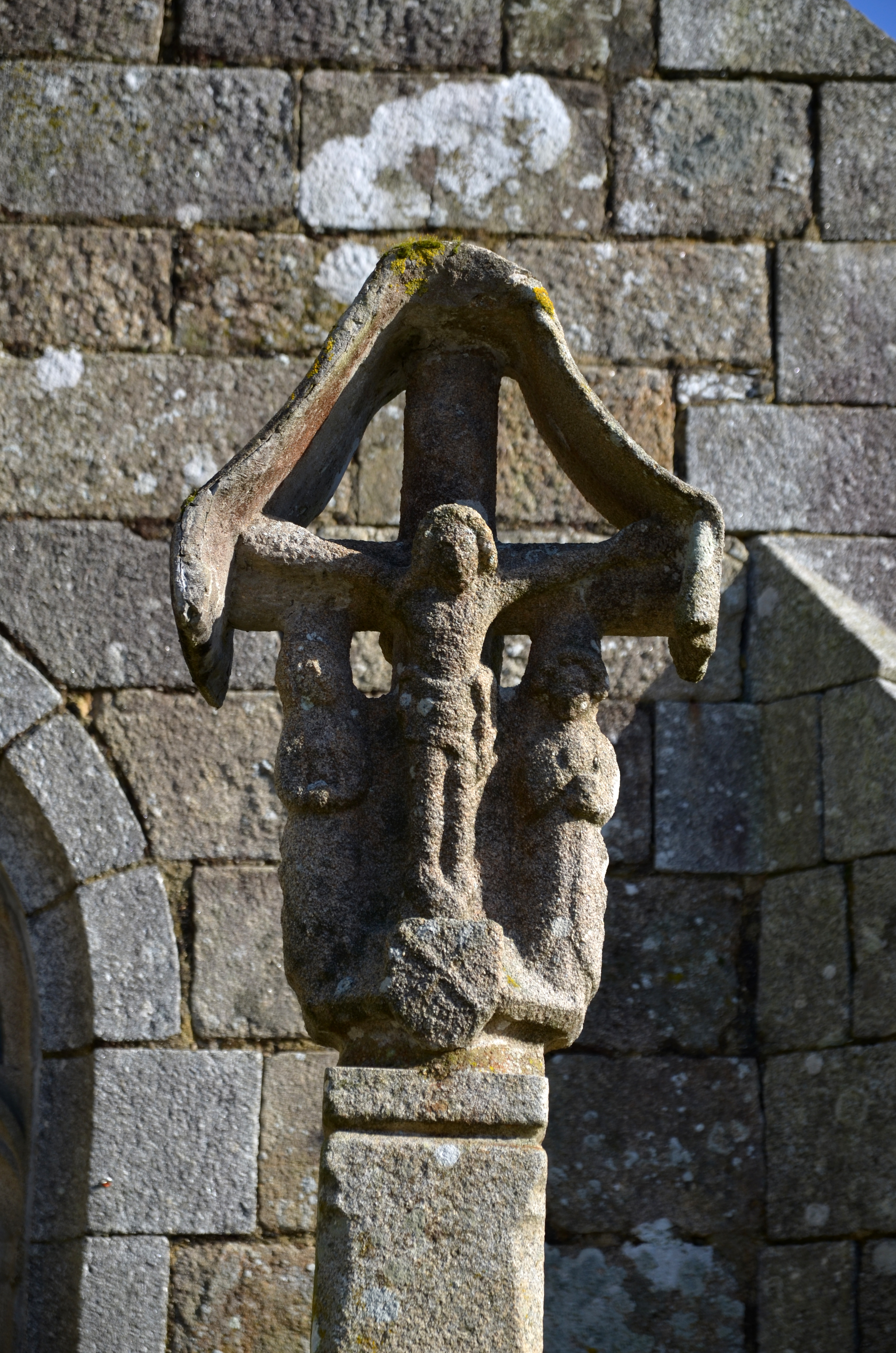 Ploubezre, le bourg : calvaire (ancienne croix de cimetière : ?) du cimetière de l'église paroissiale Saint-Pierre, vue de détailImmatriculation