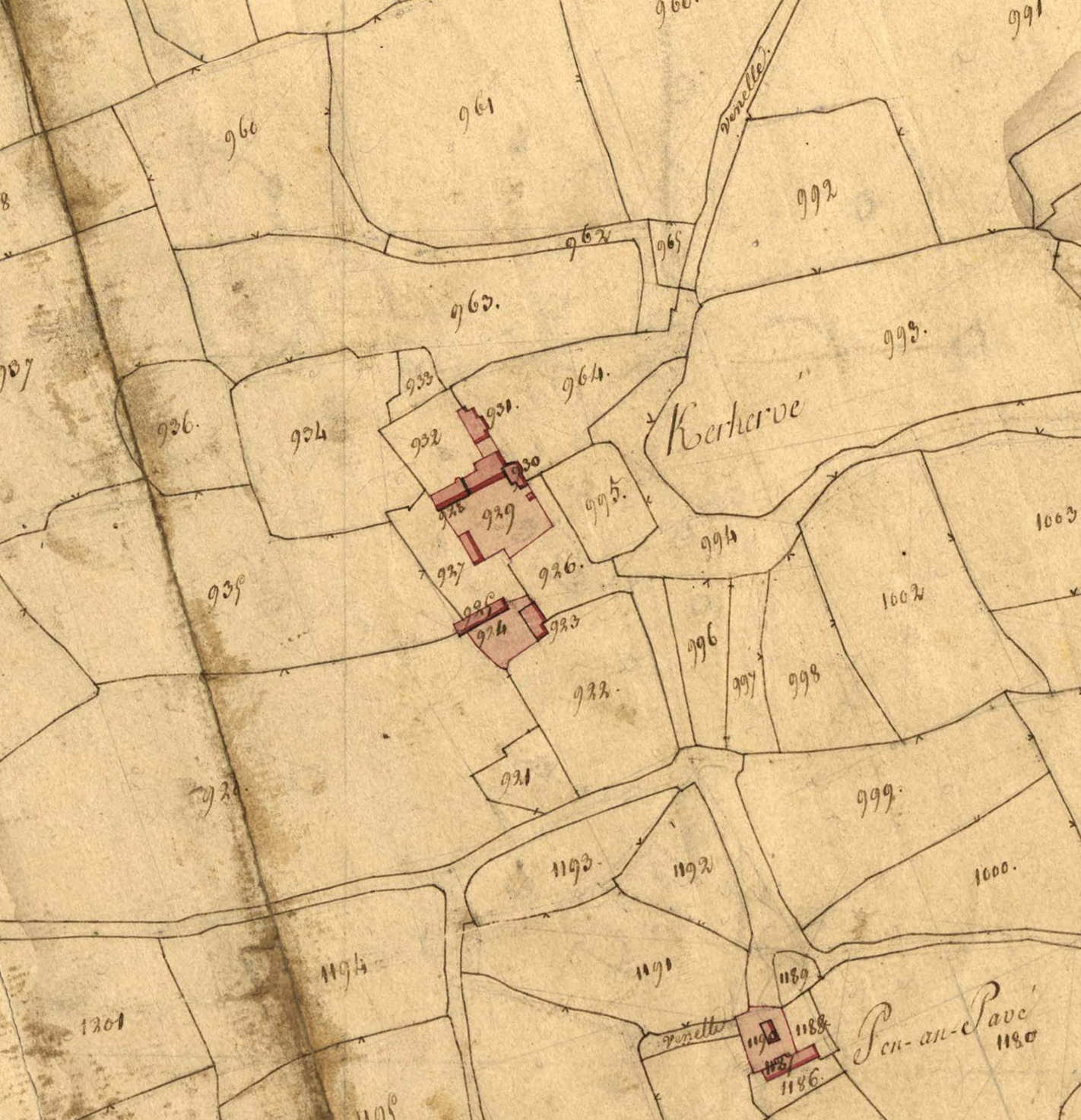 Extrait du cadastre ancien de la commune de Ploubezre, 1826 : KerhervéImmatriculation
