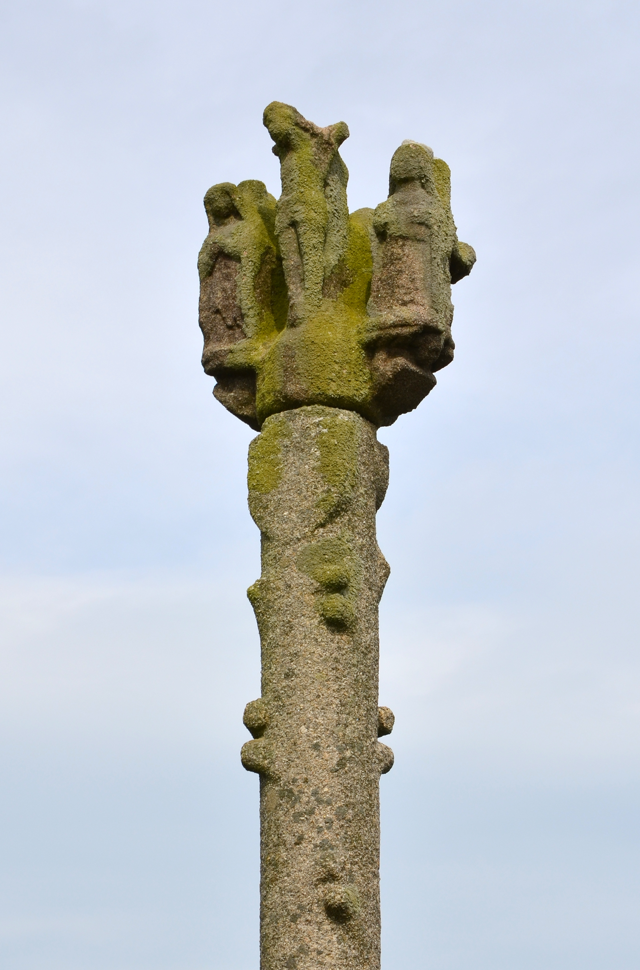 Ploubezre, Rudunès, au nord de Kerguéréon : croix de chemin, détail du Christ en croixImmatriculation
