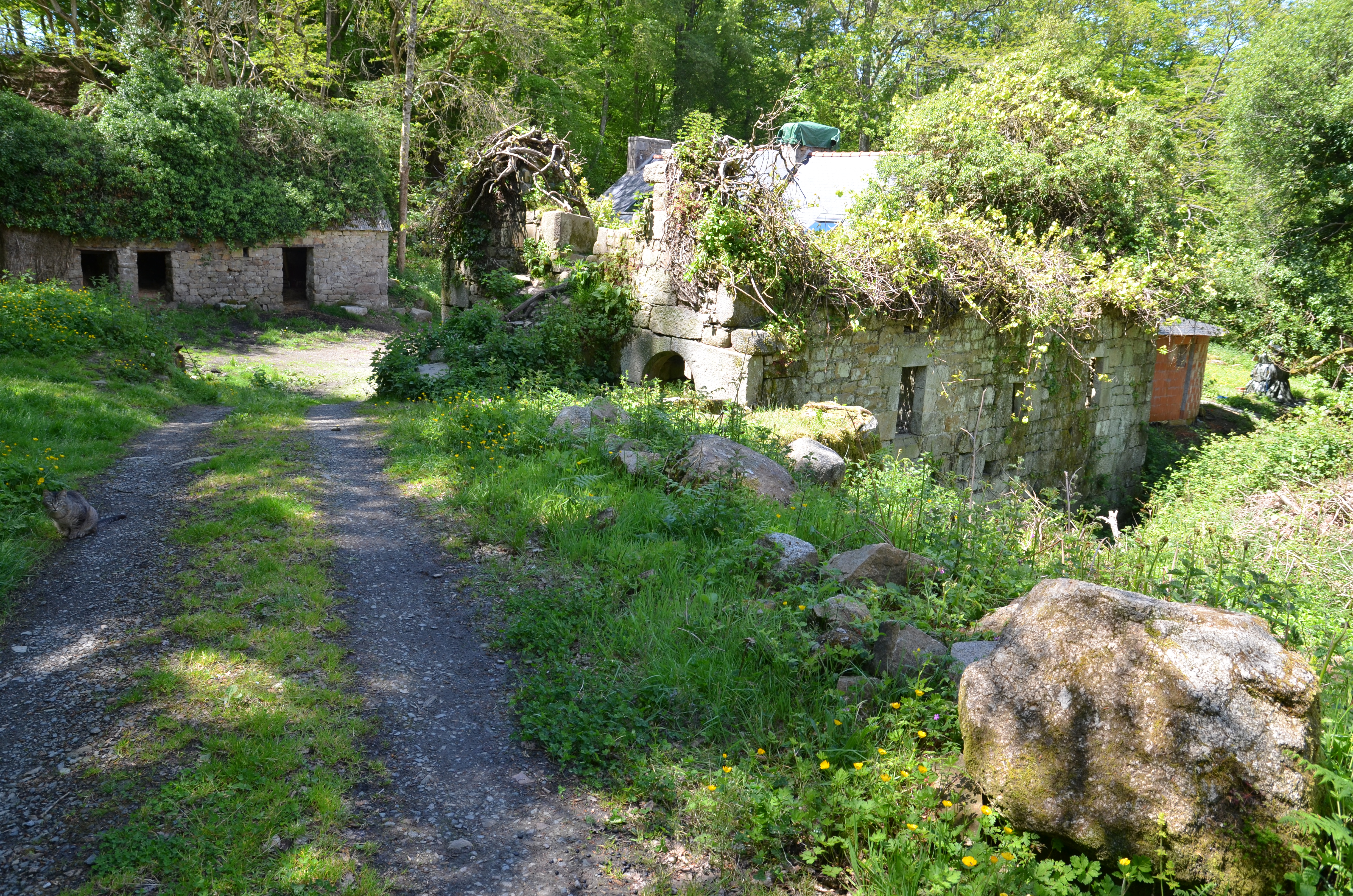 Ploubezre : moulin à eau de Kerhervé, vue générale depuis le chemin d'accès arrivant du sud-estImmatriculation