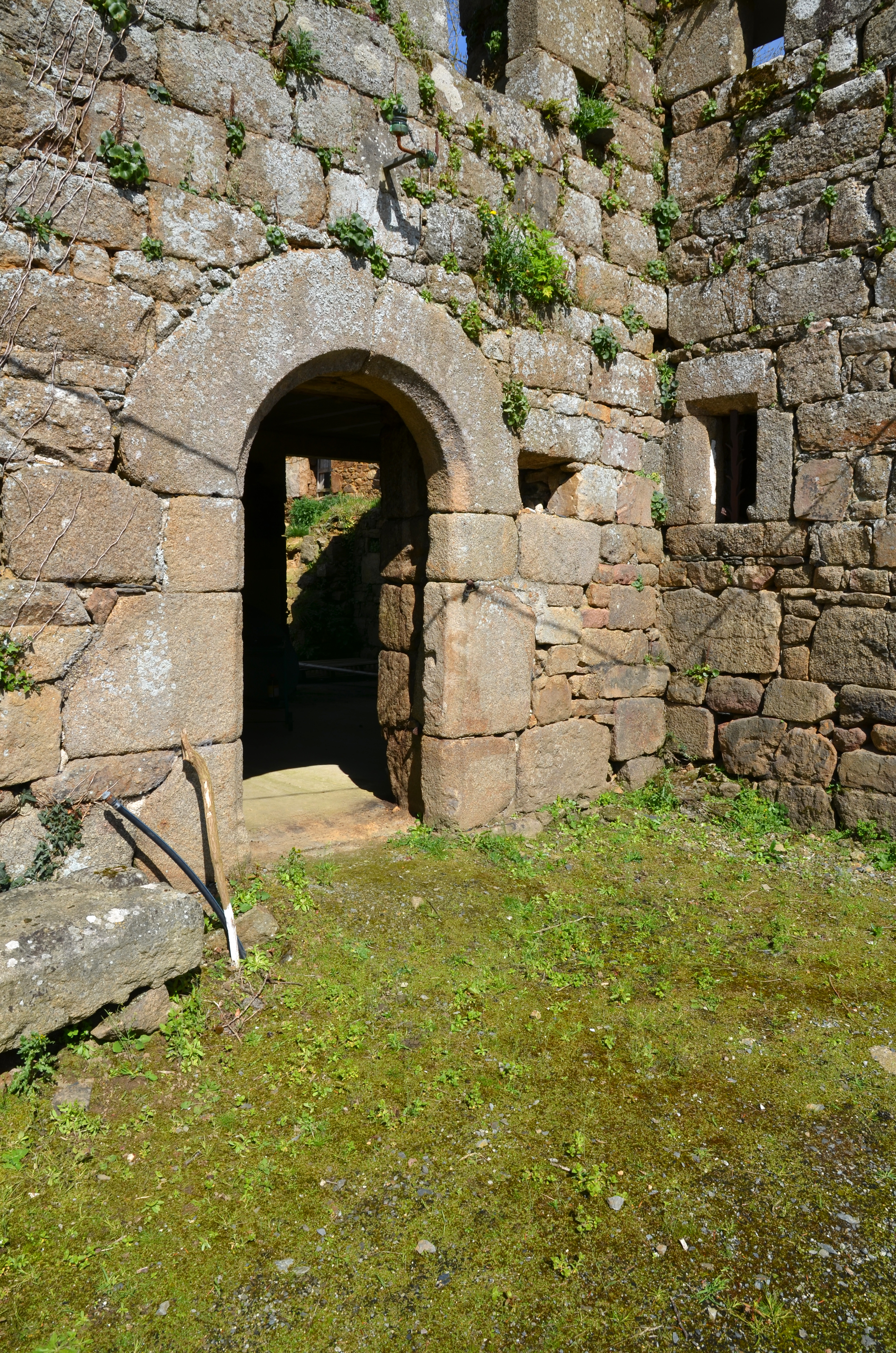 Ploubezre, Keraël : alignement de deux logis, élévation antérieure orientée vers le sud-est. Porte en arc plein cintre du logis estImmatriculation