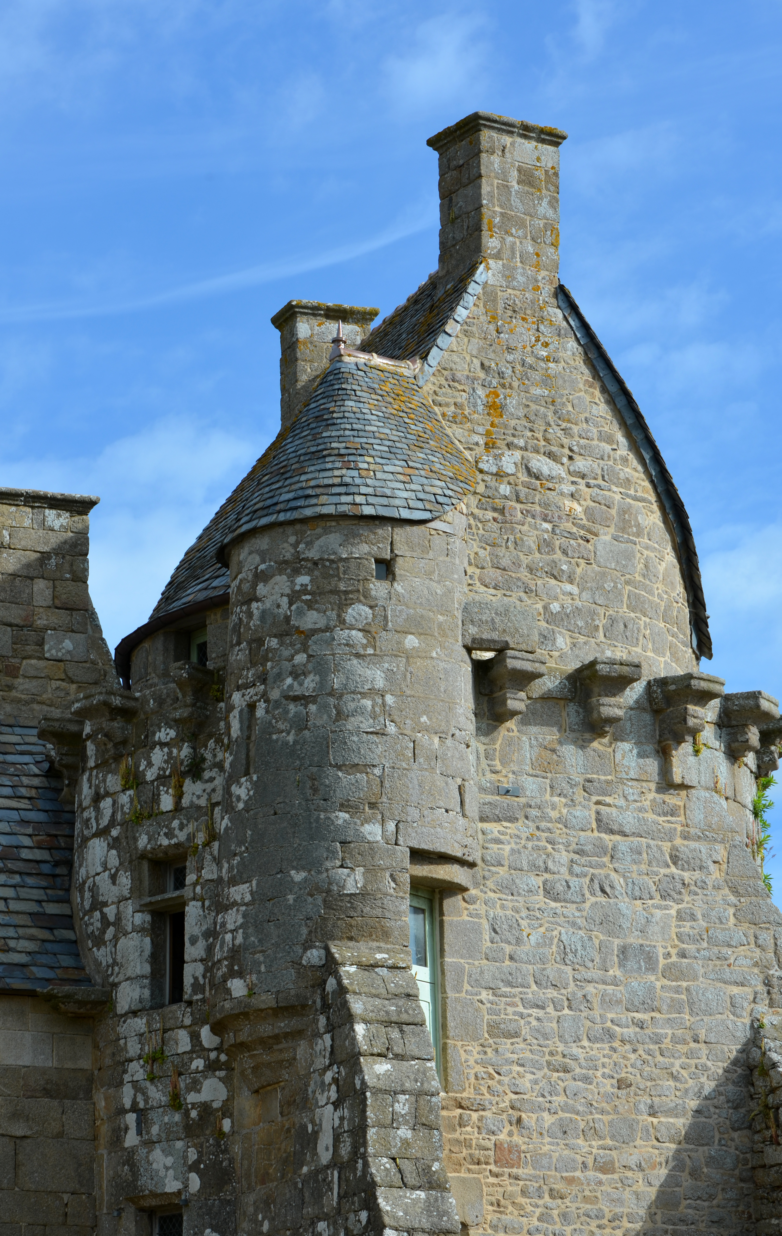 Ploubezre : manoir de Kerhervé, tour, vue de détail de l'escalier en vis secondaire menant à la chambre haute et au pigeonnier/colombierImmatriculation