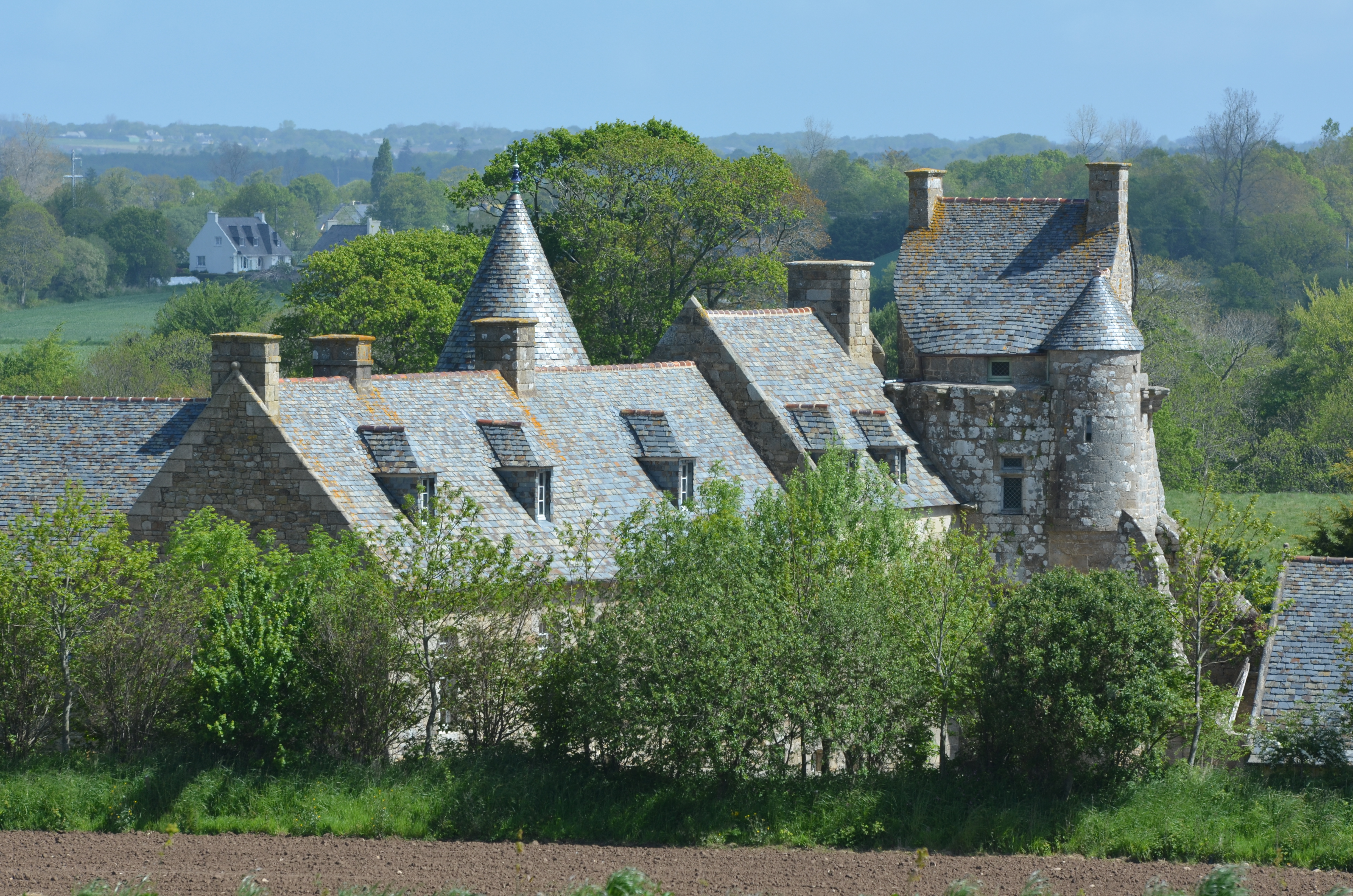 Ploubezre : manoir de Kerhervé, vue générale depuis l'ouest-sud-ouestImmatriculation