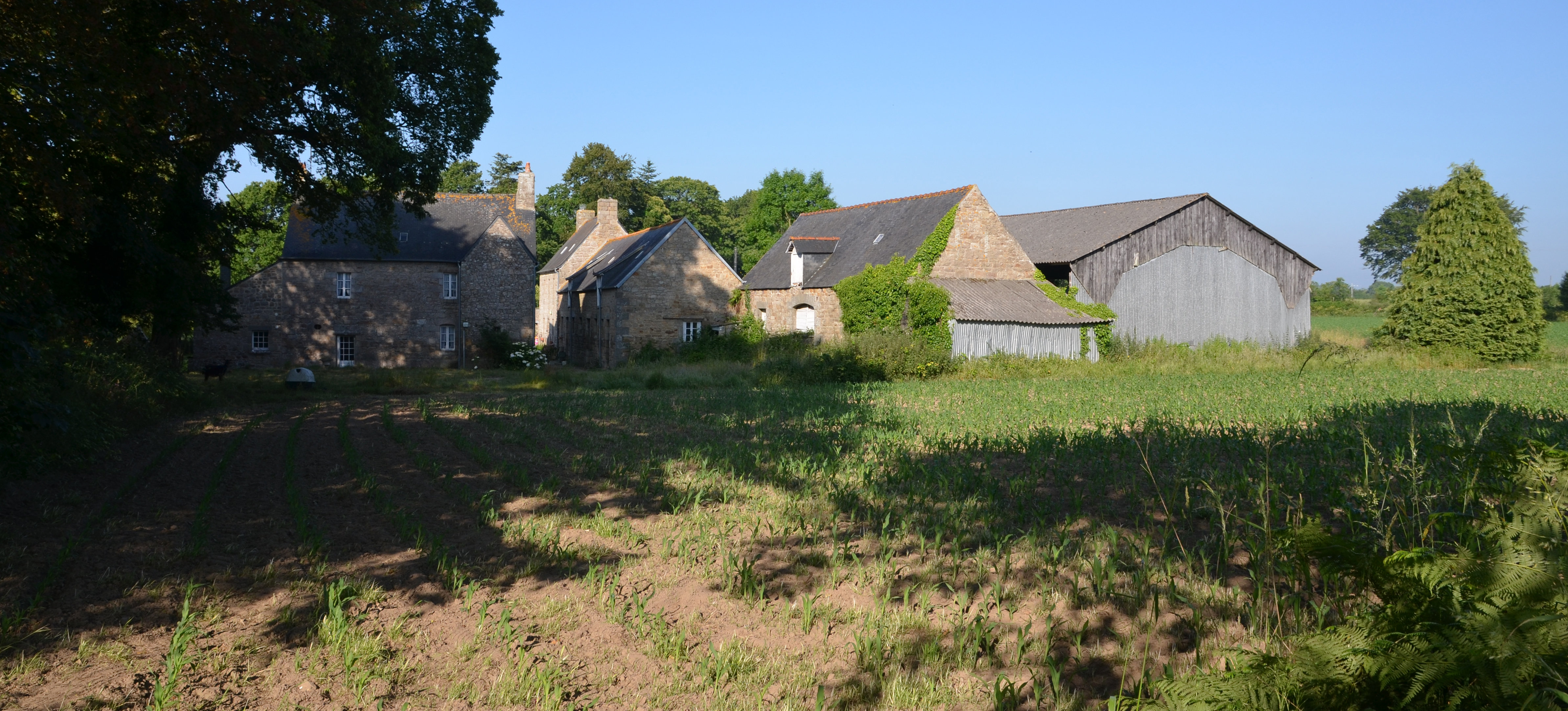 Ploubezre, Convenant Le Lamer : ensemble bâti ancien composé de deux logis de feme, vue générale depuis l'estImmatriculation