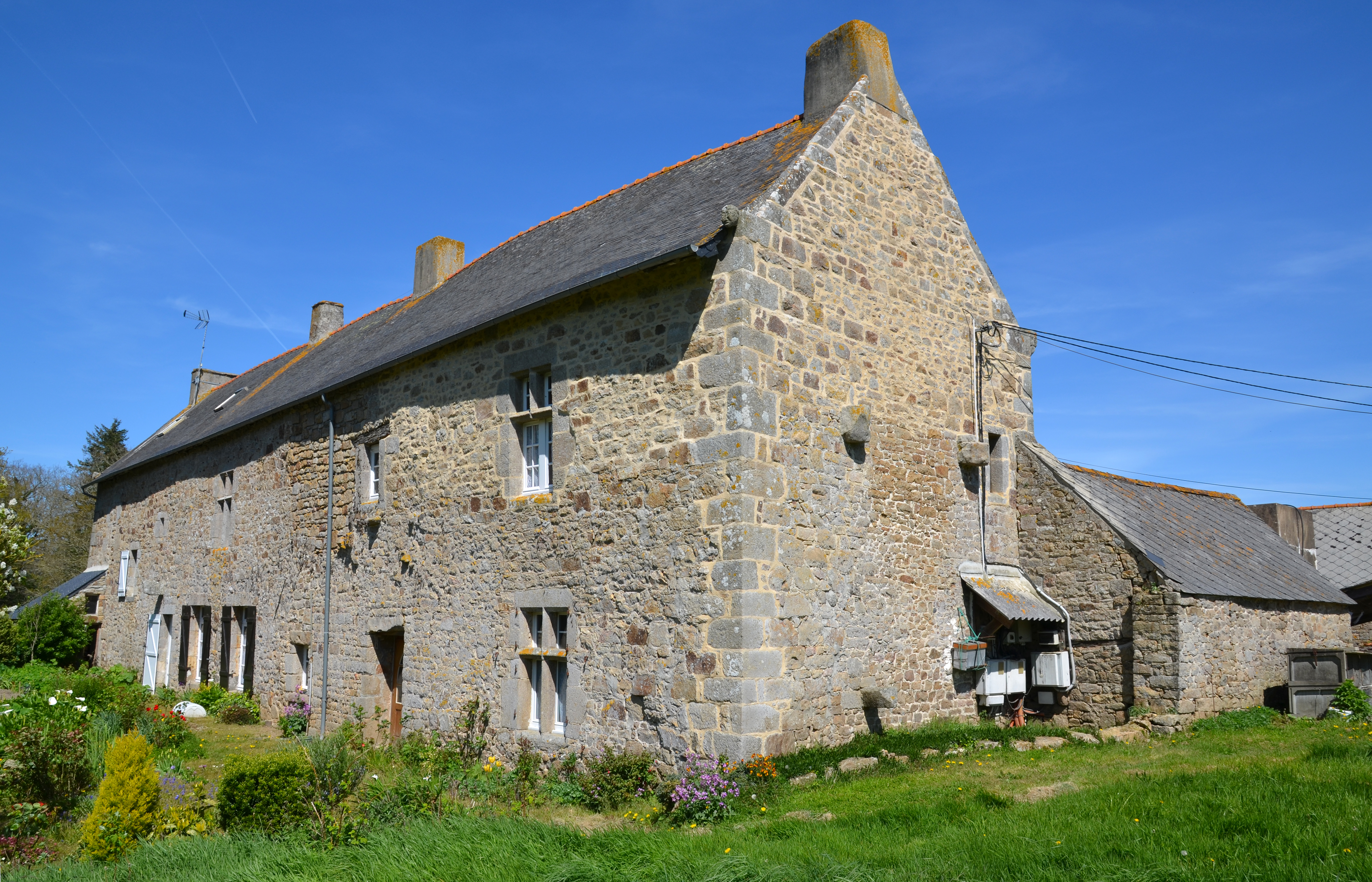 Ploubezre, Le Launay : manoir, élévation postérieure orientée vers l'ouest-sud-ouest. Elle a conservé quelques fenêtres à meneauxImmatriculation