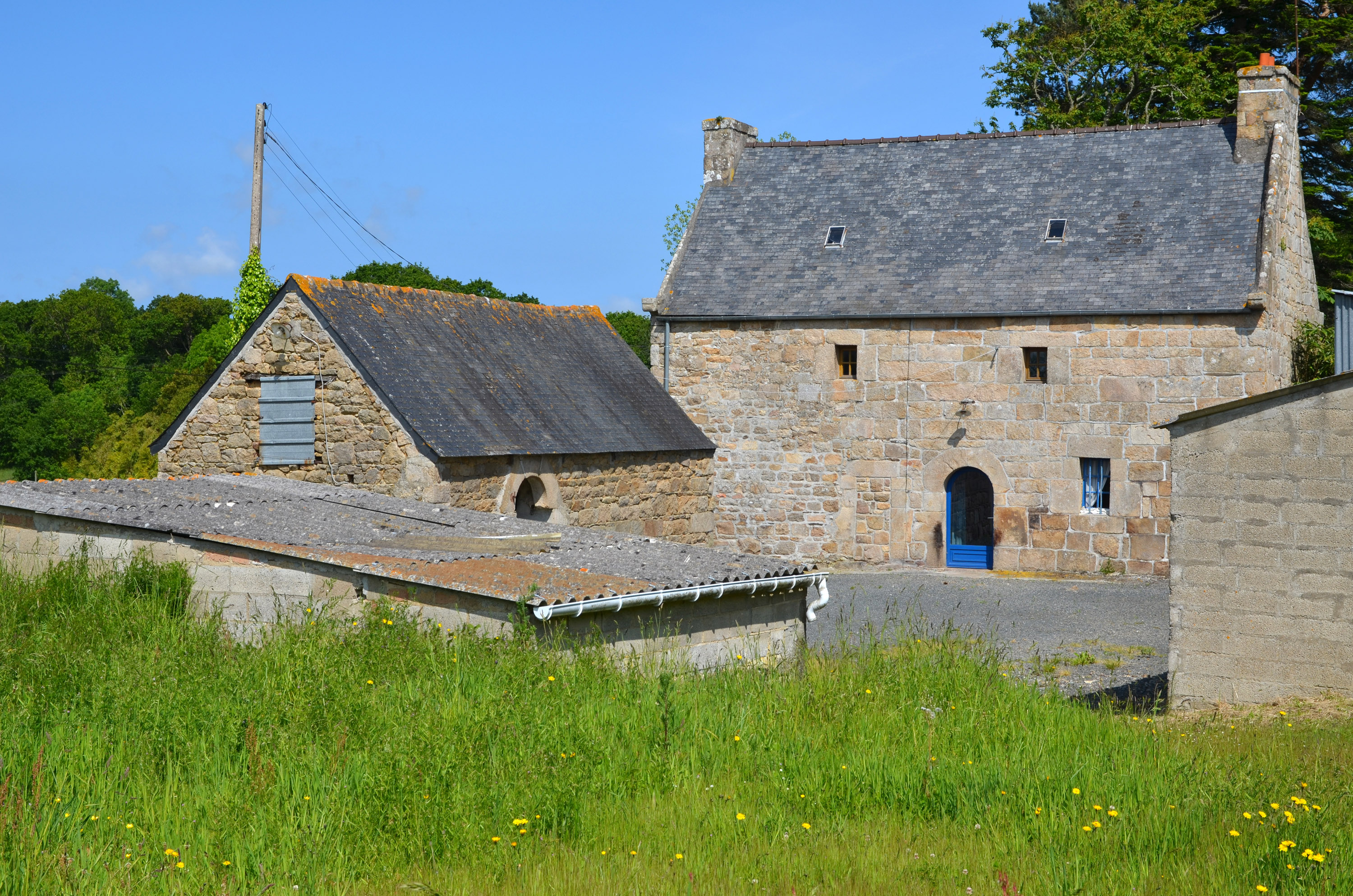 Ploubezre, Convenant Droniou : ferme, vue générale depuis le sud. Le logis est datable du 17e siècle ; les dépendances (étable, écurie, grange) datent du 19e siècleImmatriculation