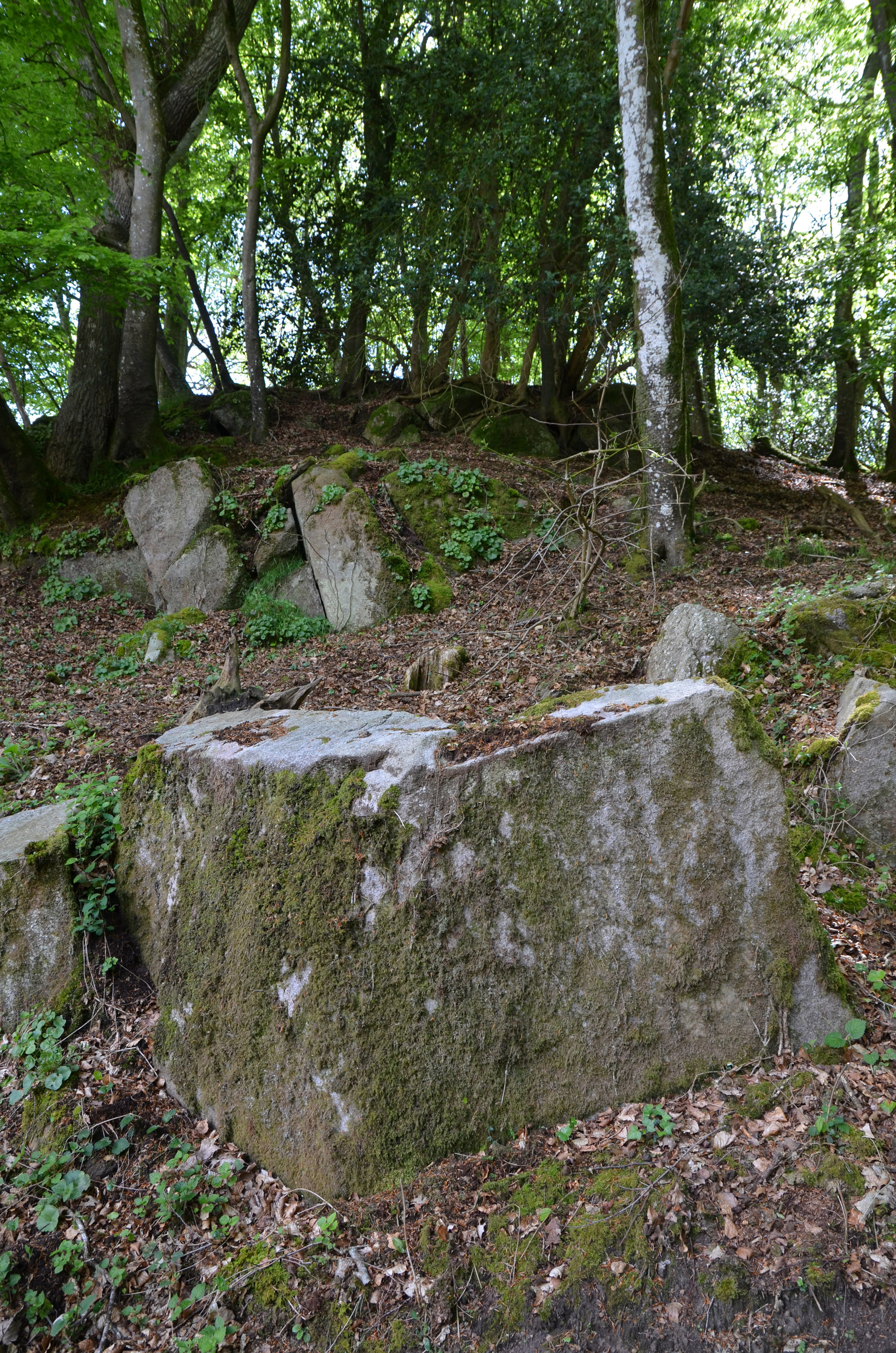 Ploubezre : ancienne carrière de granite dans les environs immédiats du moulin à eau de Kerhervé. On peut observer : blocs, traces de débit et fronts de taille...Immatriculation