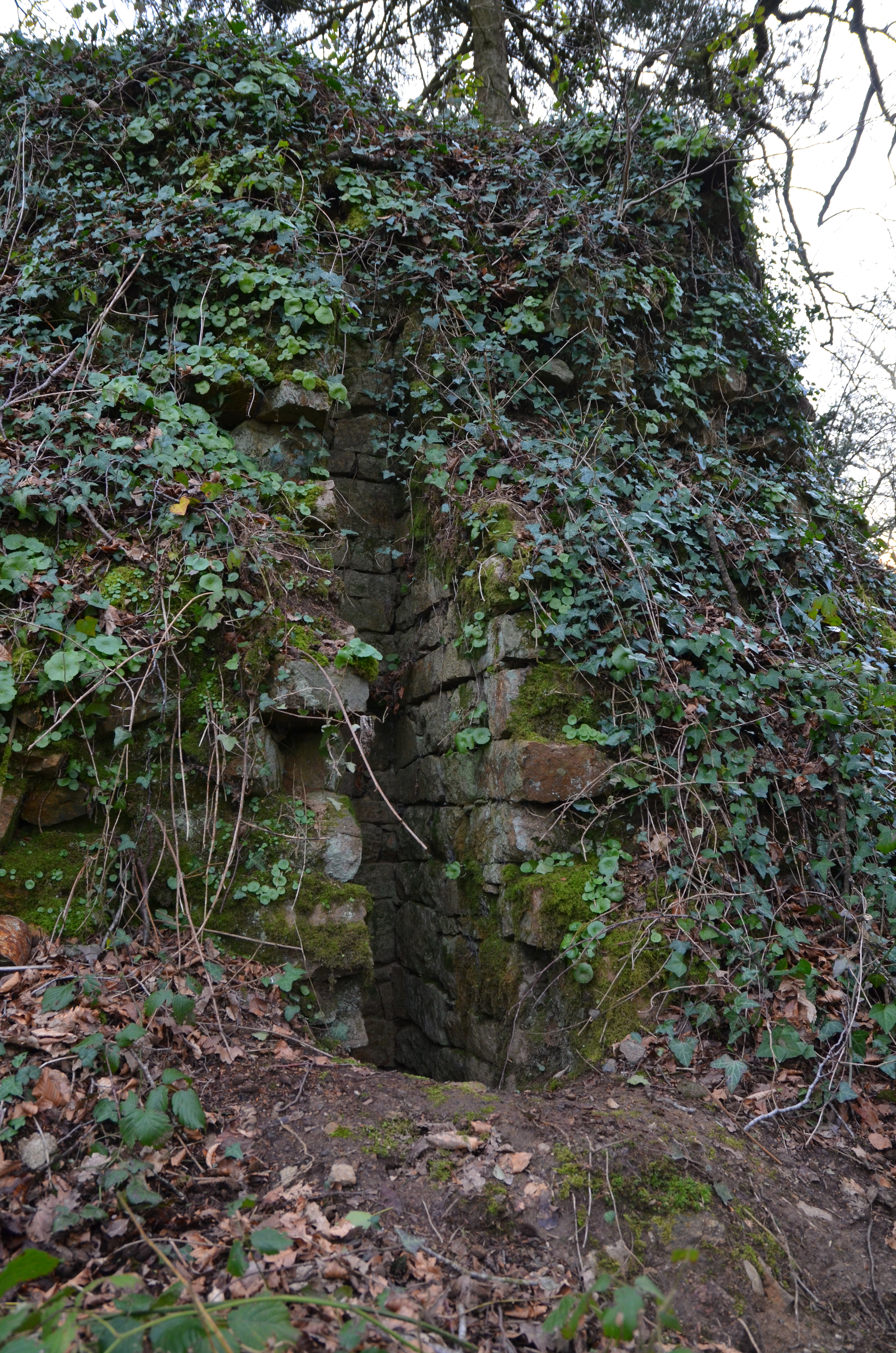 Ploubezre, Runfao : vestiges du château fort, fosse maçonnée des latrines au pied de la tour dominant le LéguerImmatriculation