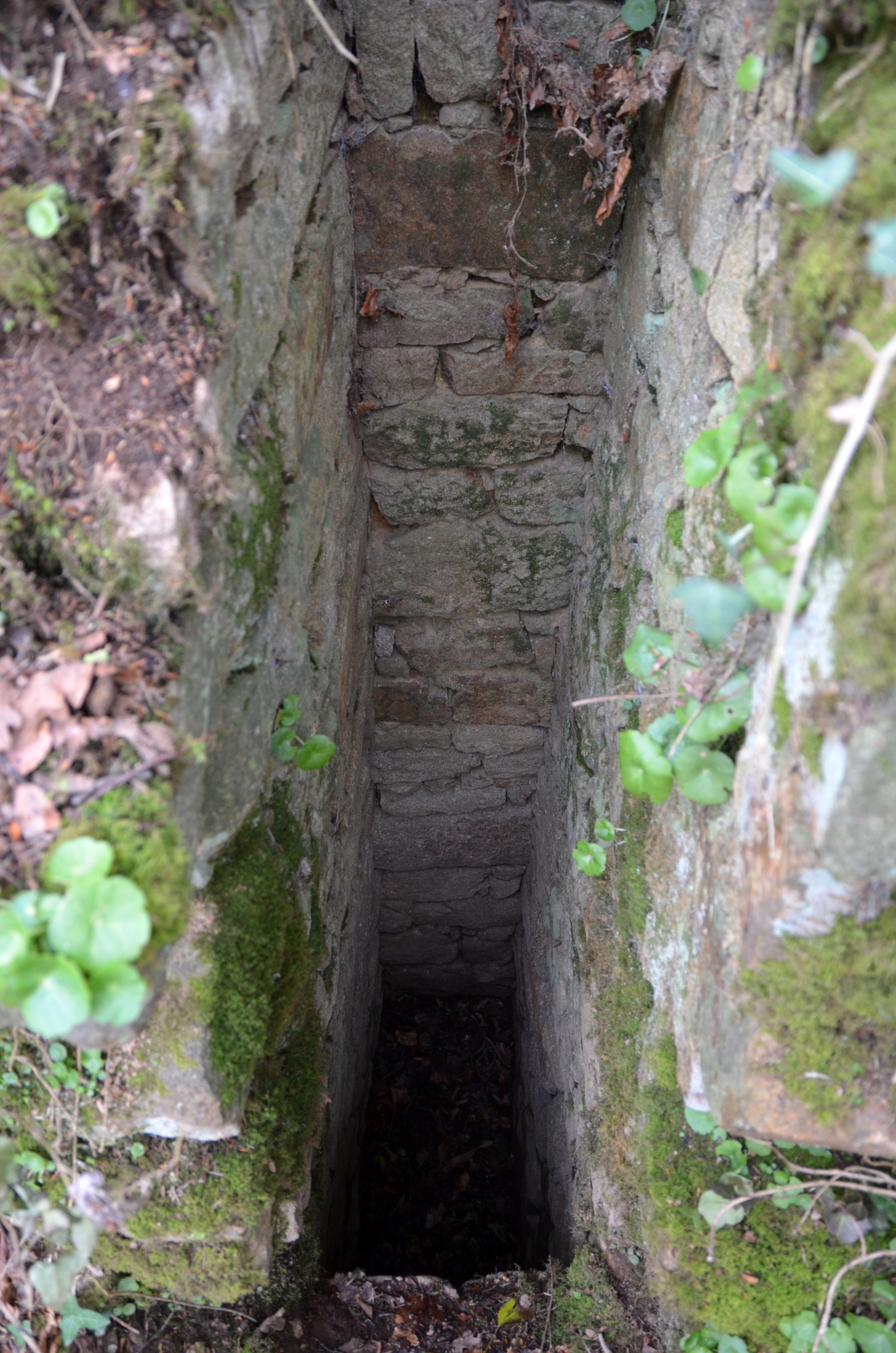 Ploubezre, Runfao : vestiges du château fort, fosse maçonnée des latrines au pied de la tour dominant le LéguerImmatriculation