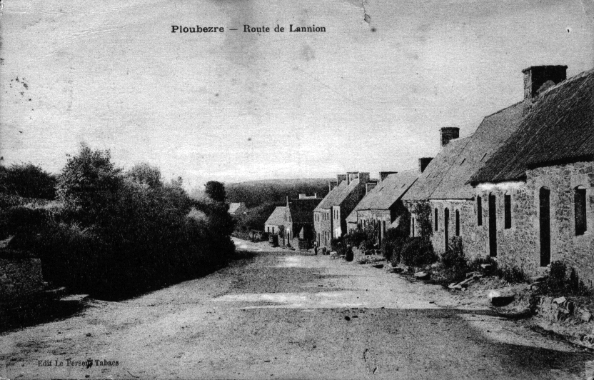 Ploubezre : le bourg (nord), rue Paul Salaun, maisons (logis élémentaires) construites dans le 1er quart du 19e siècle, carte postale (collection particulière)Immatriculation