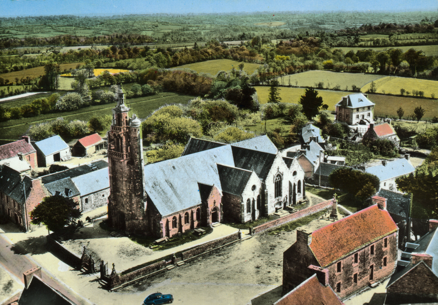 Ploubezre : le bourg et l'église paroissiale Saint-Pierre, vue générale oblique depuis le sud-ouest, carte postale (collection particulière)Immatriculation