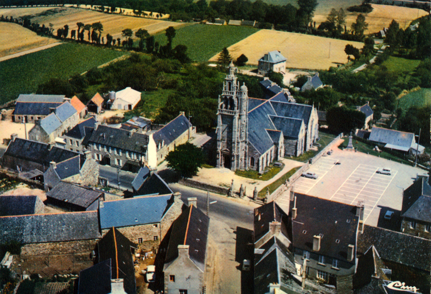 Ploubezre : le bourg et l'église paroissiale Saint-Pierre, vue générale oblique depuis l'ouest-sud-ouest, carte postale (collection particulière)Immatriculation