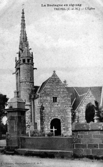 Trémel, le bourg : église paroissiale Notre-Dame, vue sud, carte postale (collection particulière)Immatriculation