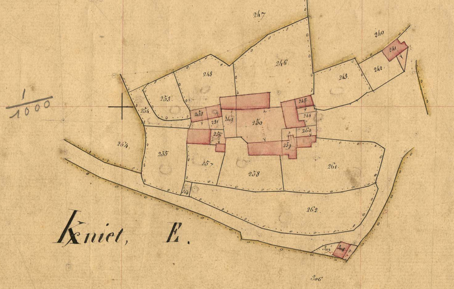 Extrait du cadastre ancien de la commune de Trémel, 1848 : K[er]niet (le Vieux Presbytère)Immatriculation