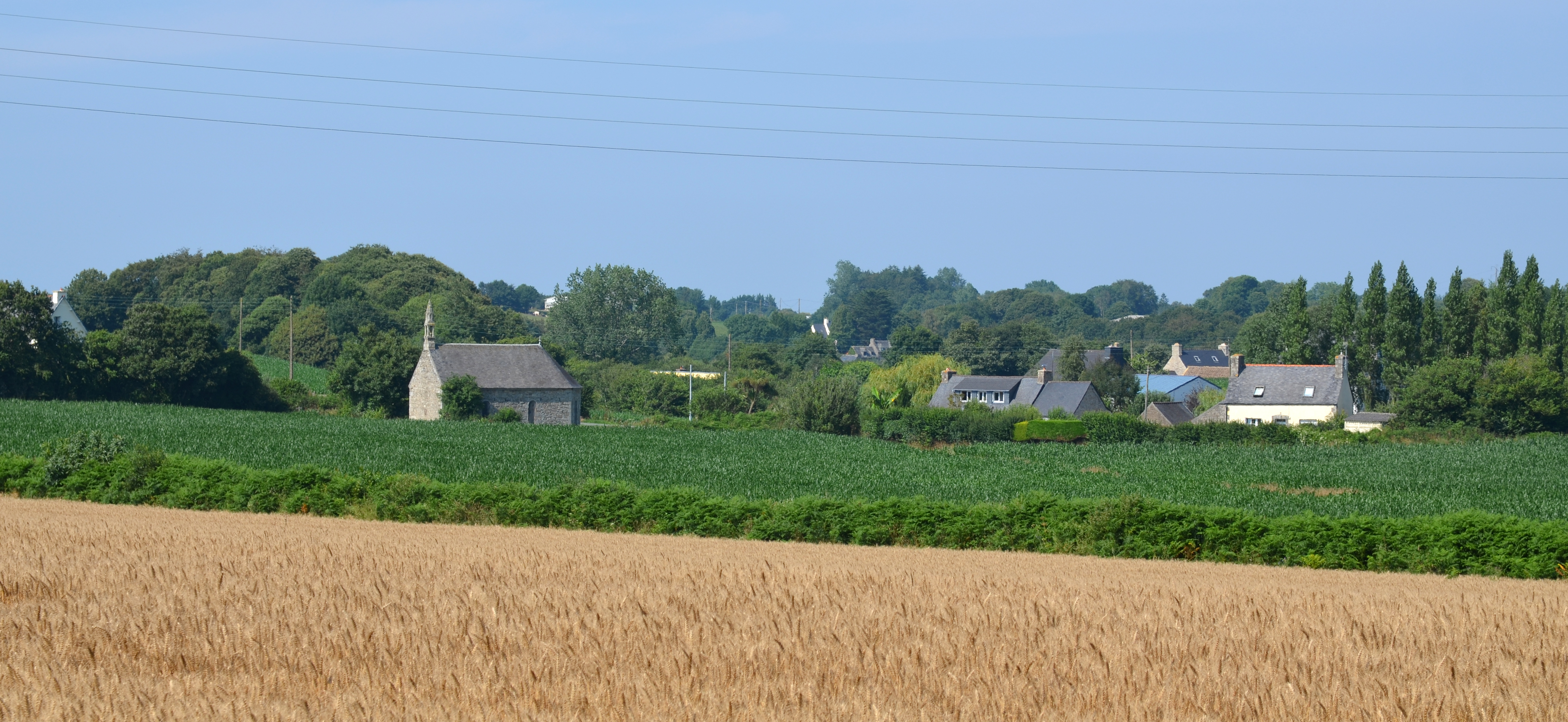 Trémel, Saint-Maurice : vue de situation de la chapelle depuis le Louc'h au sud-sud-ouestImmatriculation