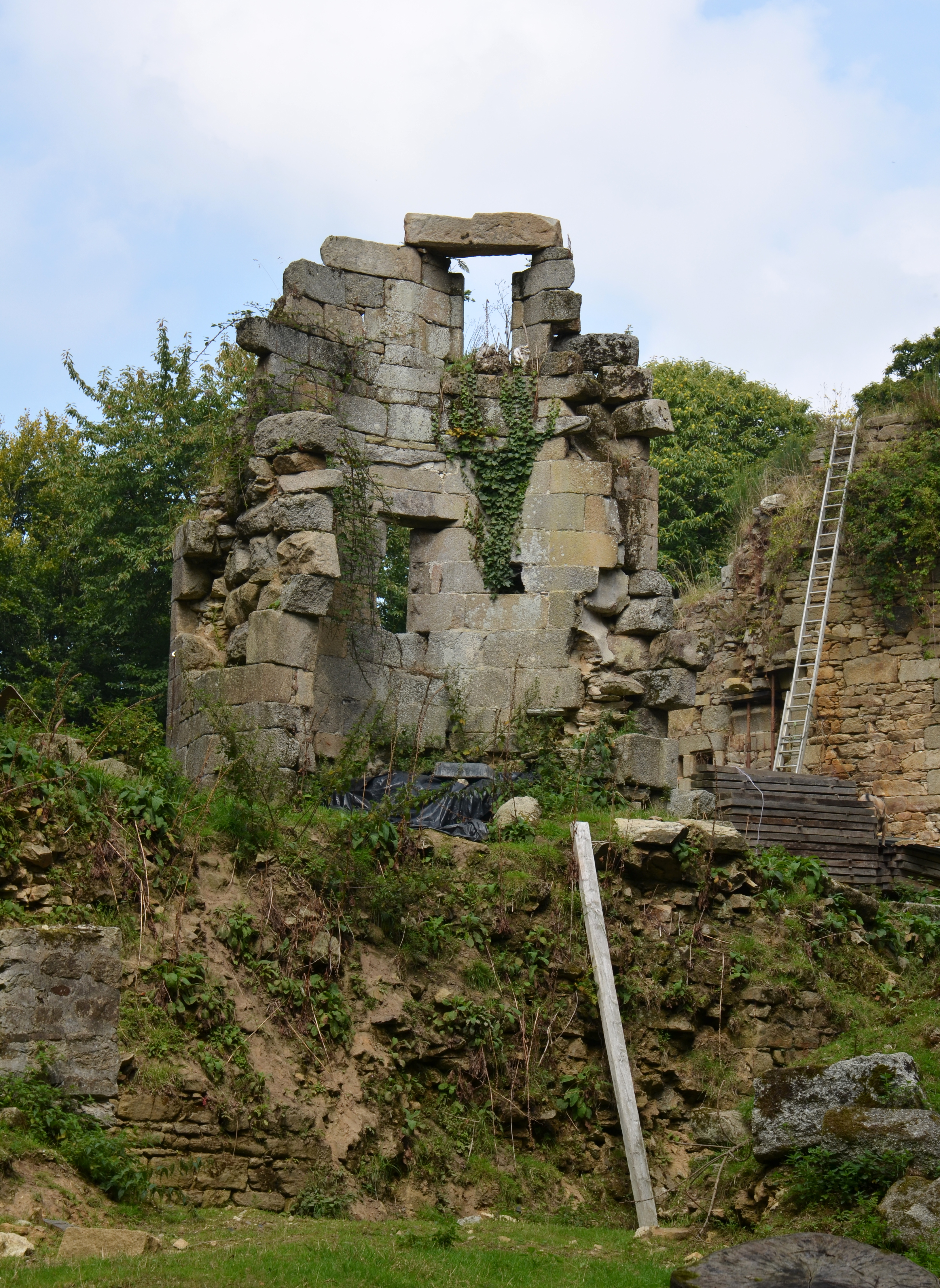 Ploubezre : château fort de Coat Frec, vestiges de la tour d'escalier en vis du logisImmatriculation