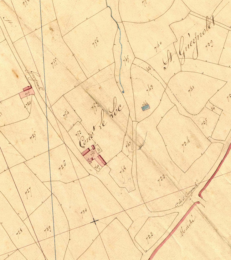 Extrait du cadastre ancien de la commune de Tonquédec, 1835 : Saint Gueynolet (Saint-Guénolé)Immatriculation