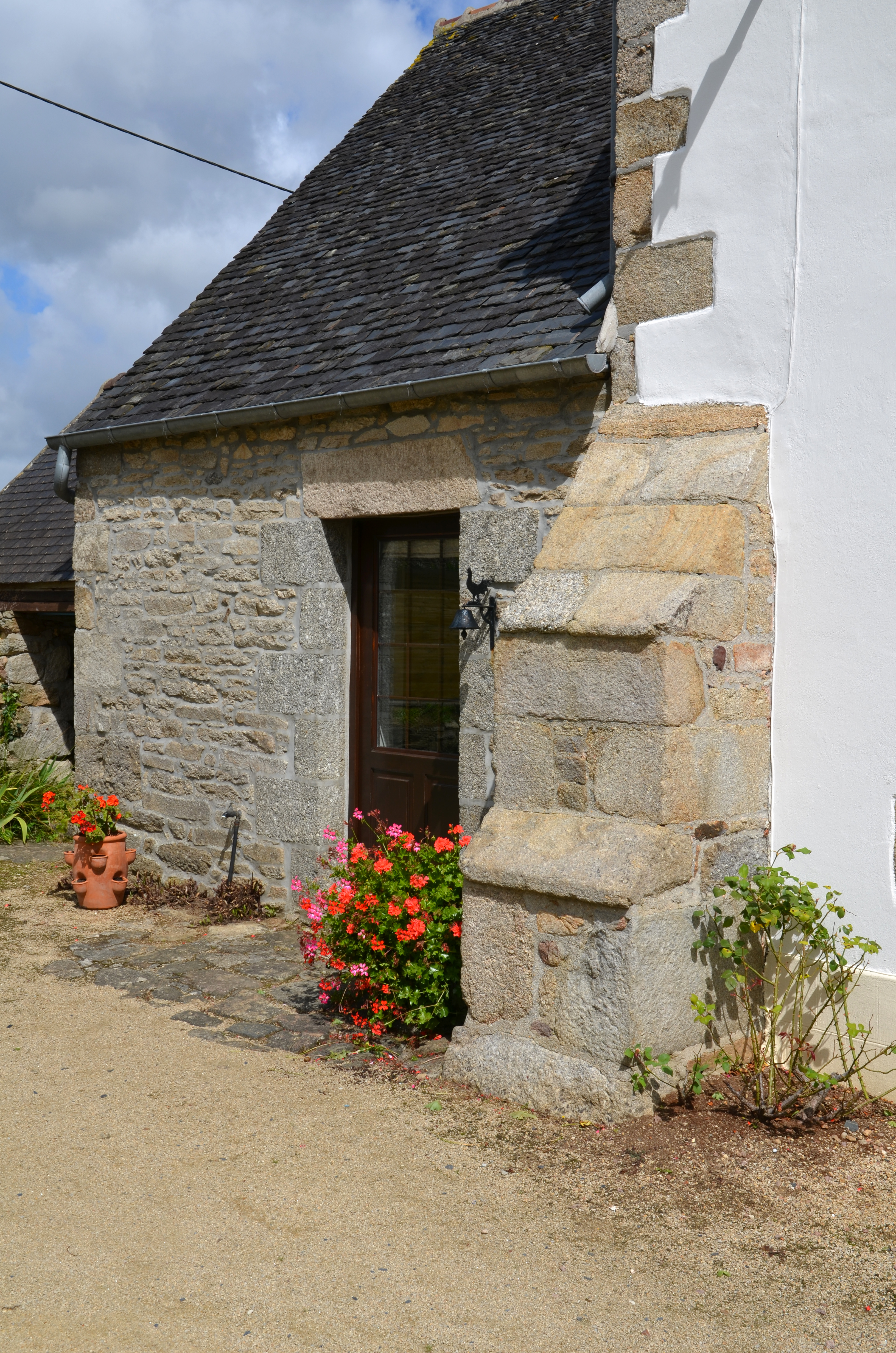 Trémel, le Vieux Presbytère : maison de prêtre datée 1725, élévation antérieure orientée vers le sud-ouest, détail du contrefortImmatriculation