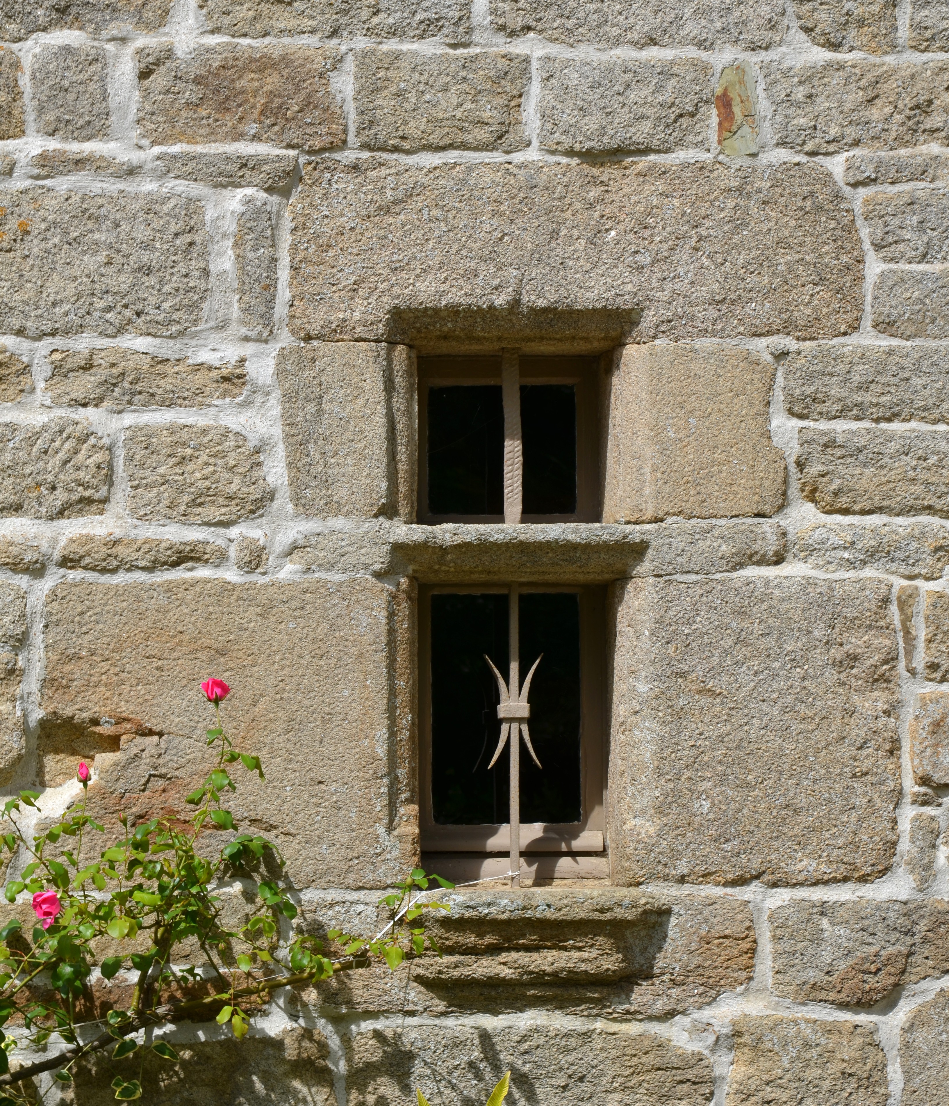 Trémel, Zan Logot : maison datée 1588, élévation antérieure orientée vers l'est-sud-est, détail d'une baie du rez-de-chaussée à traverse et appui saillantImmatriculation