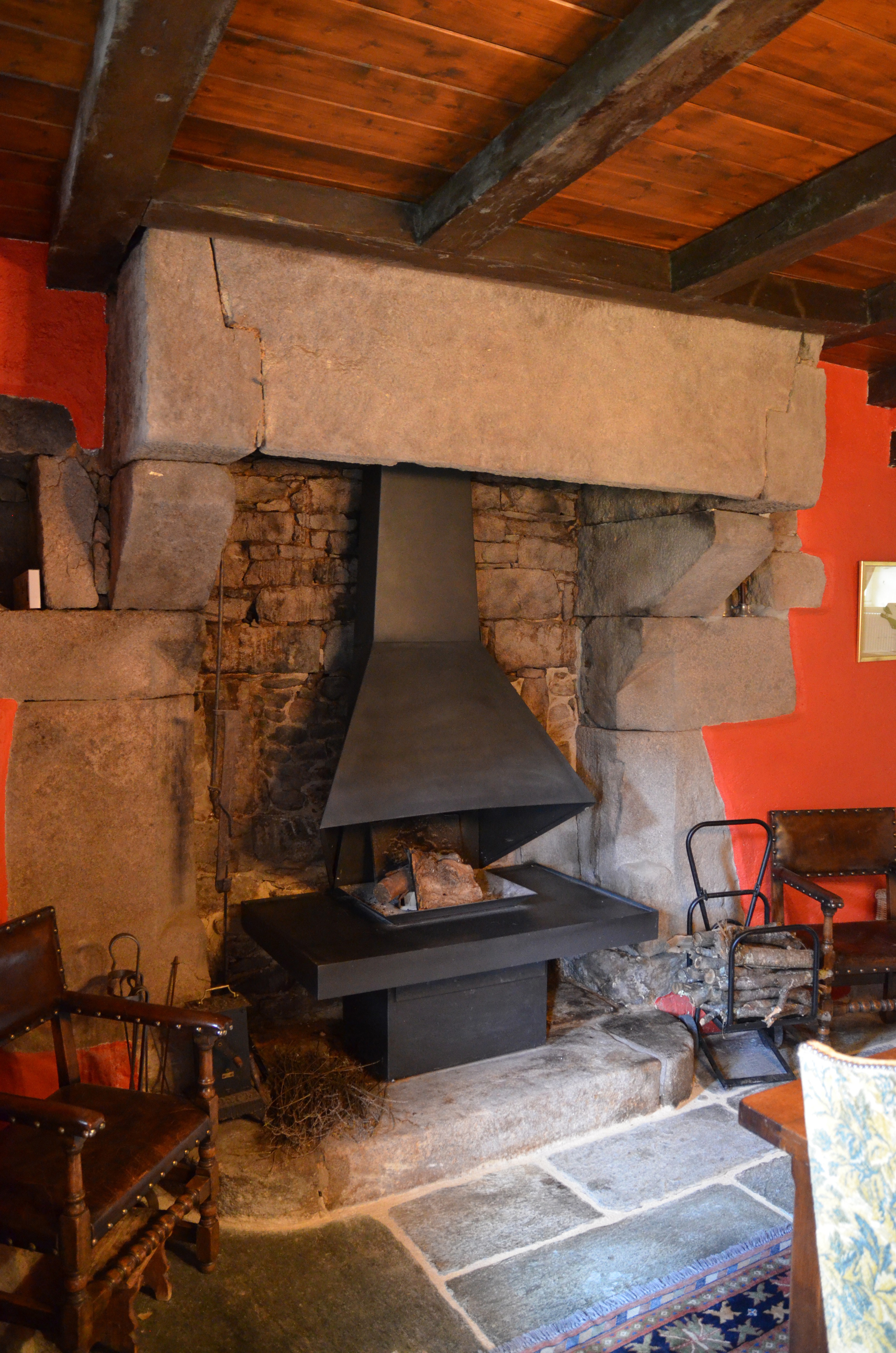 Trémel, Zan Logot : maison datée 1588, vue intérieure, rez-de-chaussée, cheminéeImmatriculation