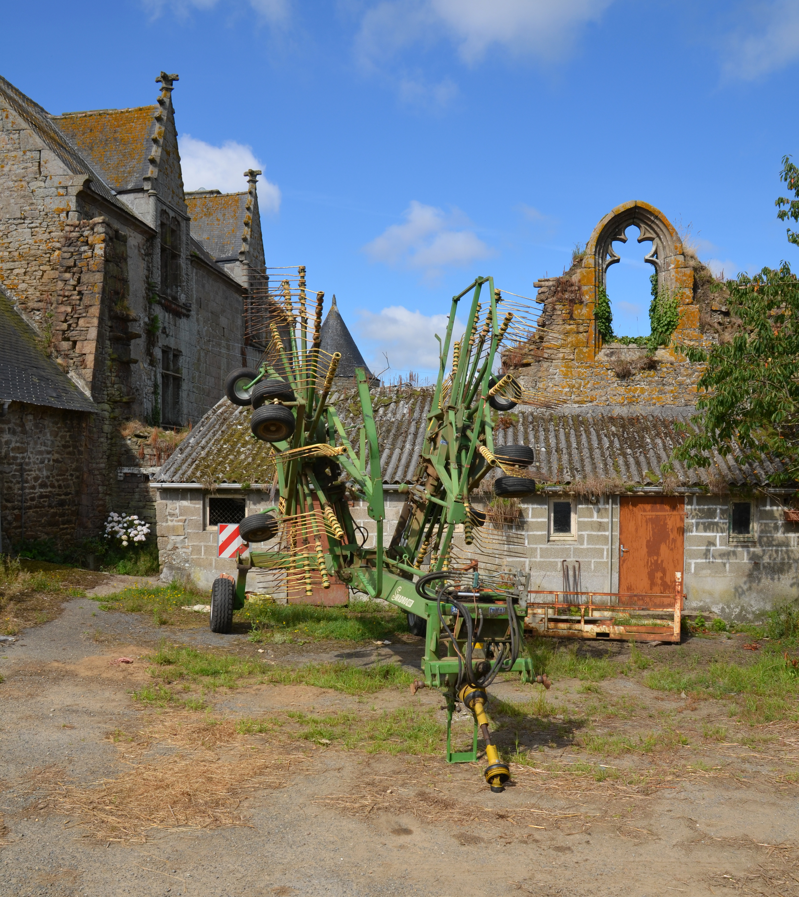 Trémel : manoir de Kermerzit, vue générale depuis l'est, remplage de la chapelle ou oratoireImmatriculation