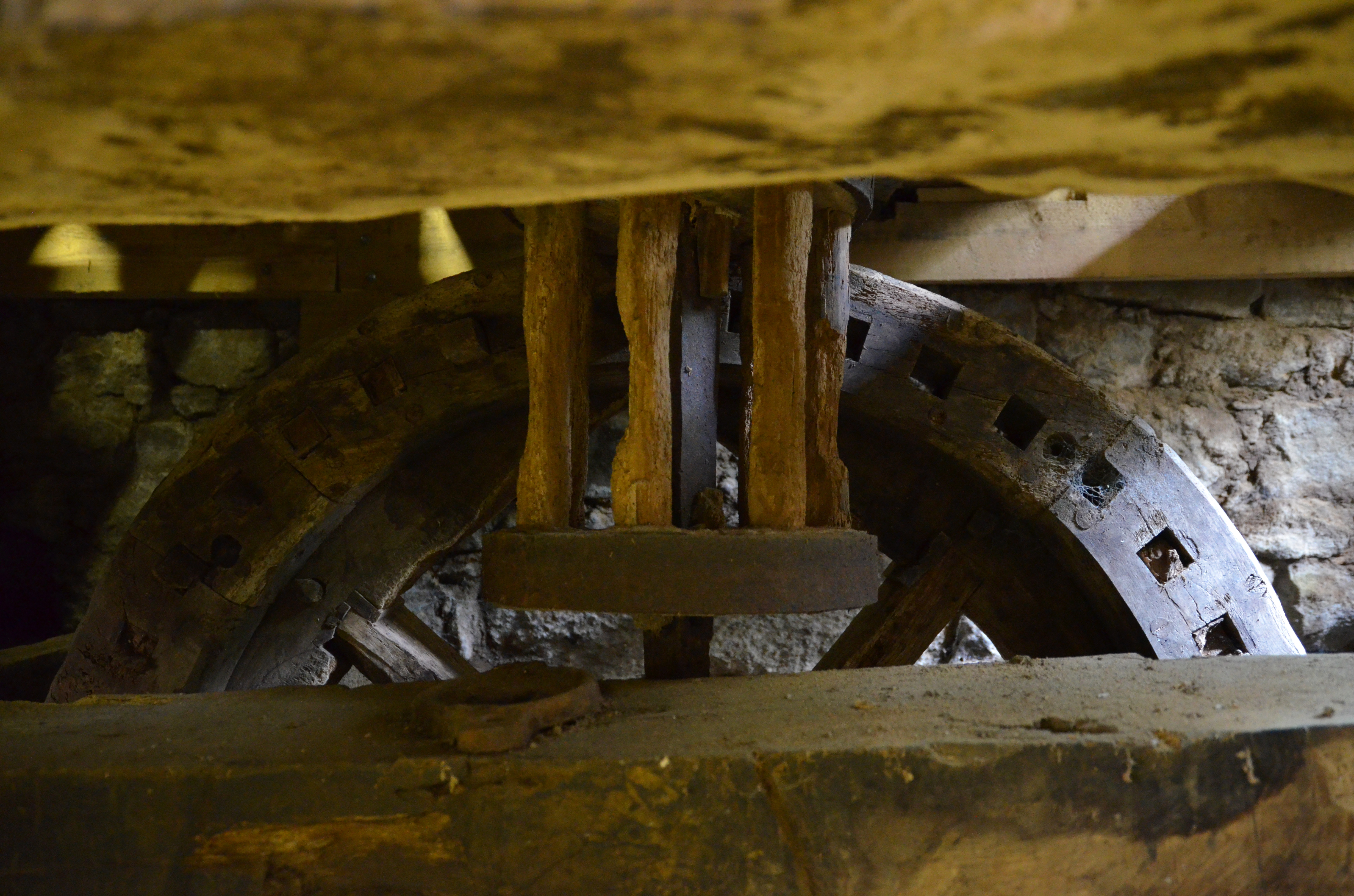 Trémel : moulin à eau de Kermerzit. Le rouet fait tourner un pignon : en bois, il est nommé "lanterne" en raison de sa formeImmatriculation