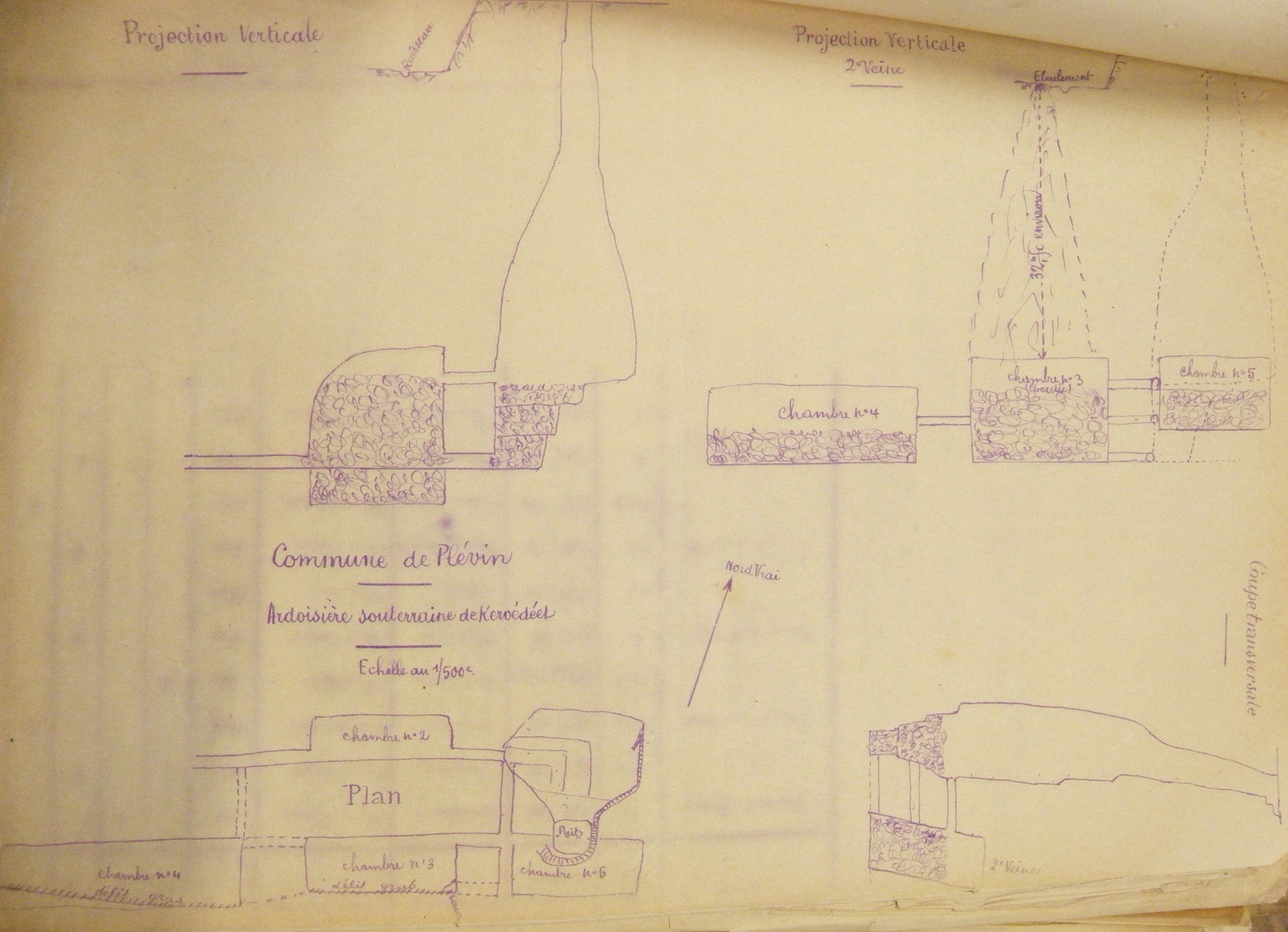 Plan et coupes de l'ardoisière de Kervédeit dans les années 1930Immatriculation