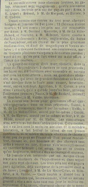 Hippodrome de l'Aublette, article du journal de l'Union malouine et dinannaise 31.01.1862 (page 2)Immatriculation