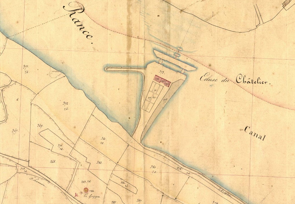 Cadastre de Saint-Samson-sur-Rance, Section A, 2e feuille, détail présentant l'écluse du Châtelier, 1844Immatriculation
