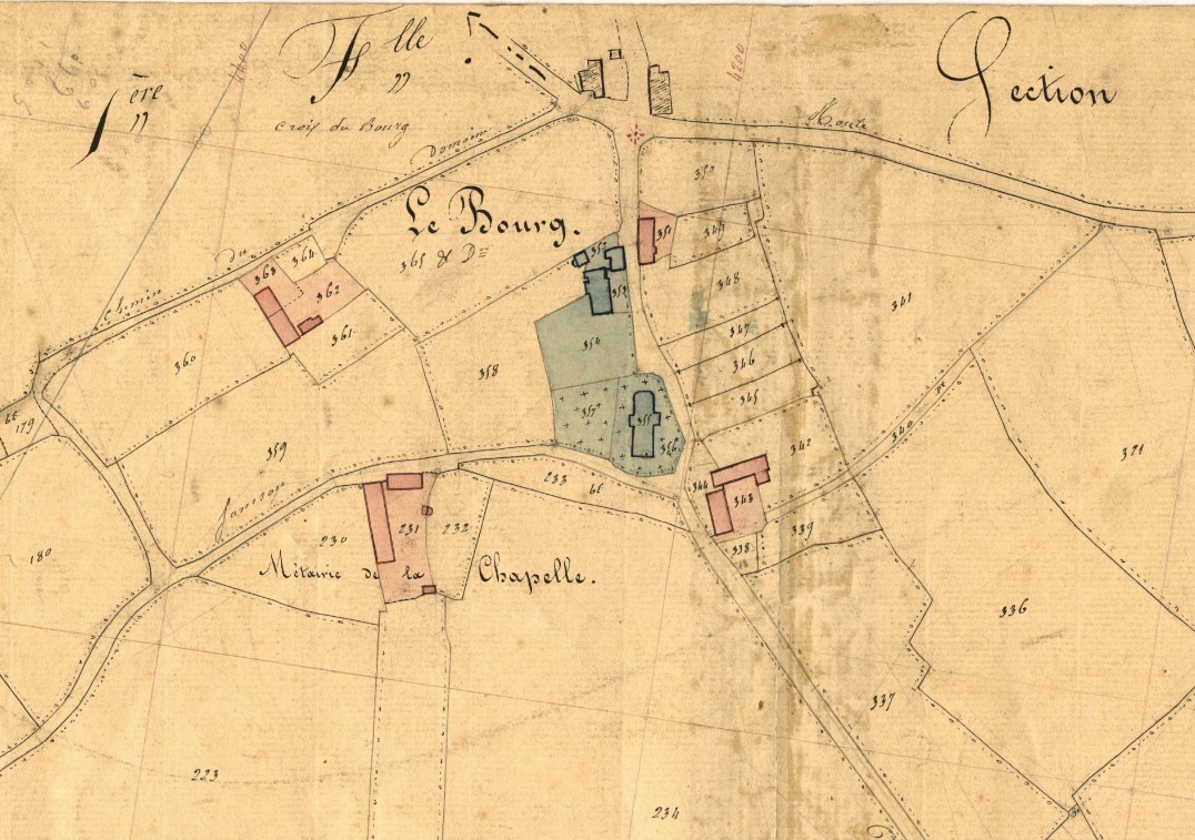 Cadastre de Saint-Samson, Section B, 2e feuille, détail, Le Bourg, 1843.Immatriculation