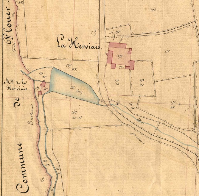 Cadastre ancien de St Samson, section A, 2e feuille, détail : la Herviais.Immatriculation