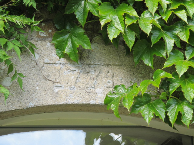Ancien manoir, détail: date portée, "1778". Vue du jardin.Immatriculation
