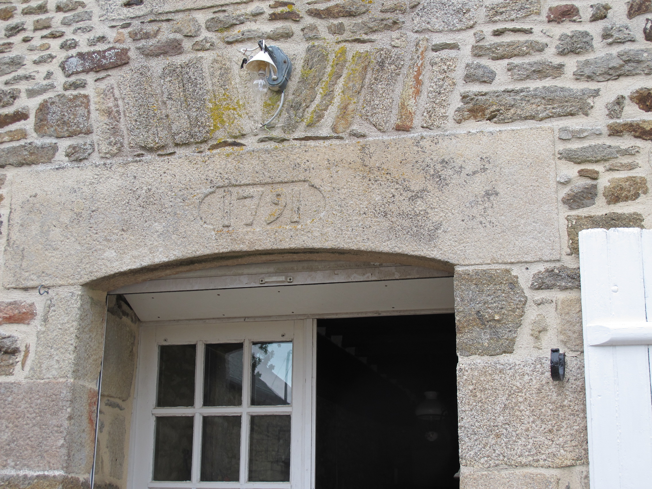 Détail: date portée sur le linteau de la porte d'entrée (1791). Vue de la cour.Immatriculation
