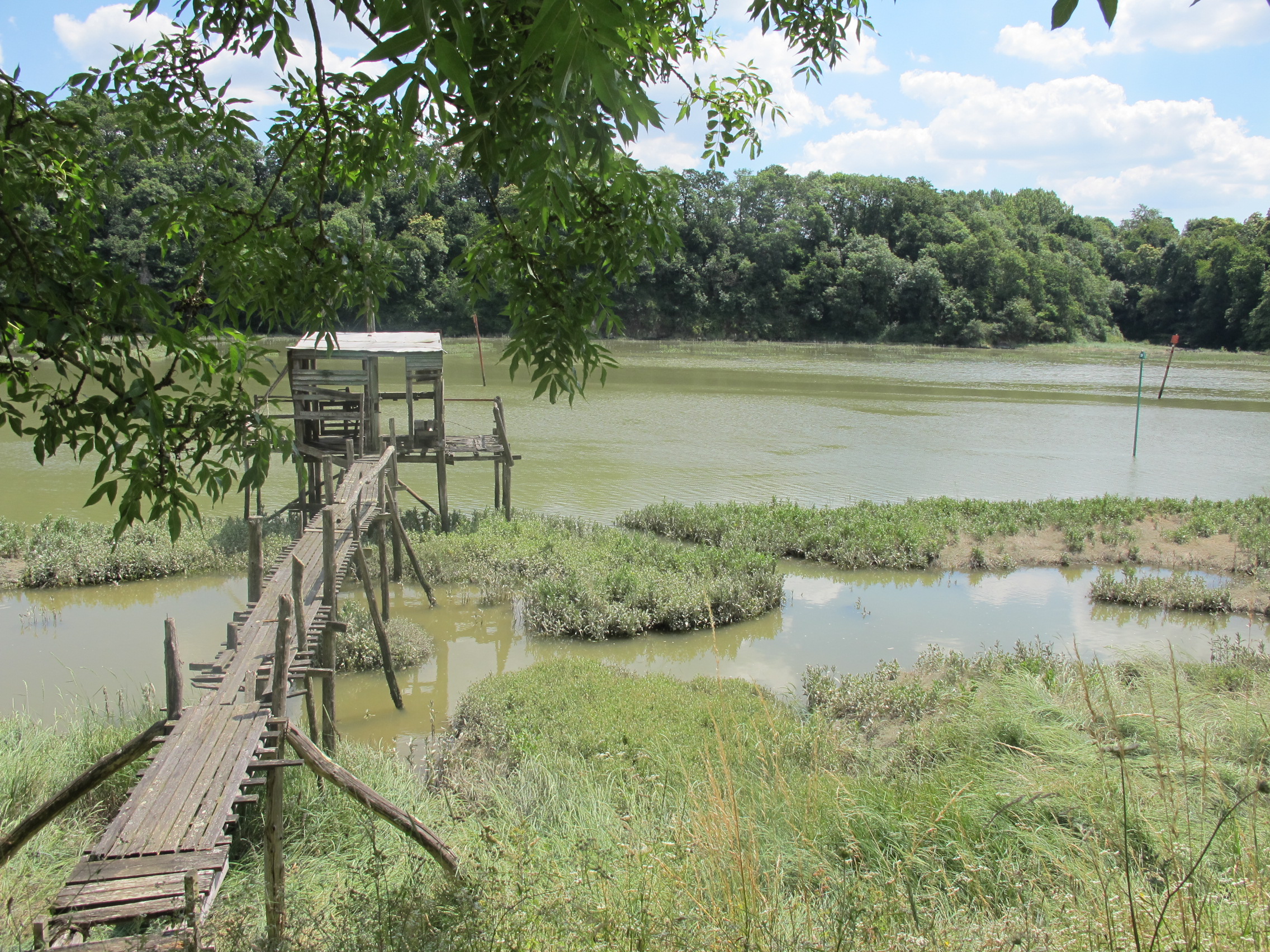 Vestiges d'une cabane de carrelet, vue de la voie publique.Immatriculation