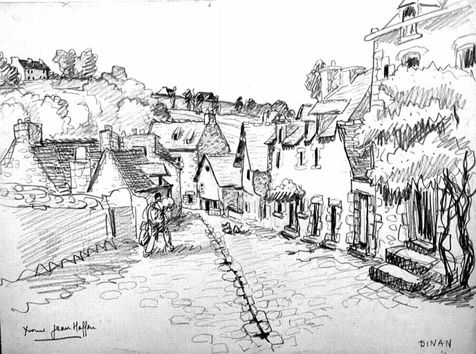 Dessin de Yvonne Jean Haffen, la rue de l'Abbaye ( Musée, maison d'artiste de la Grande Vigne, Dinan)Immatriculation