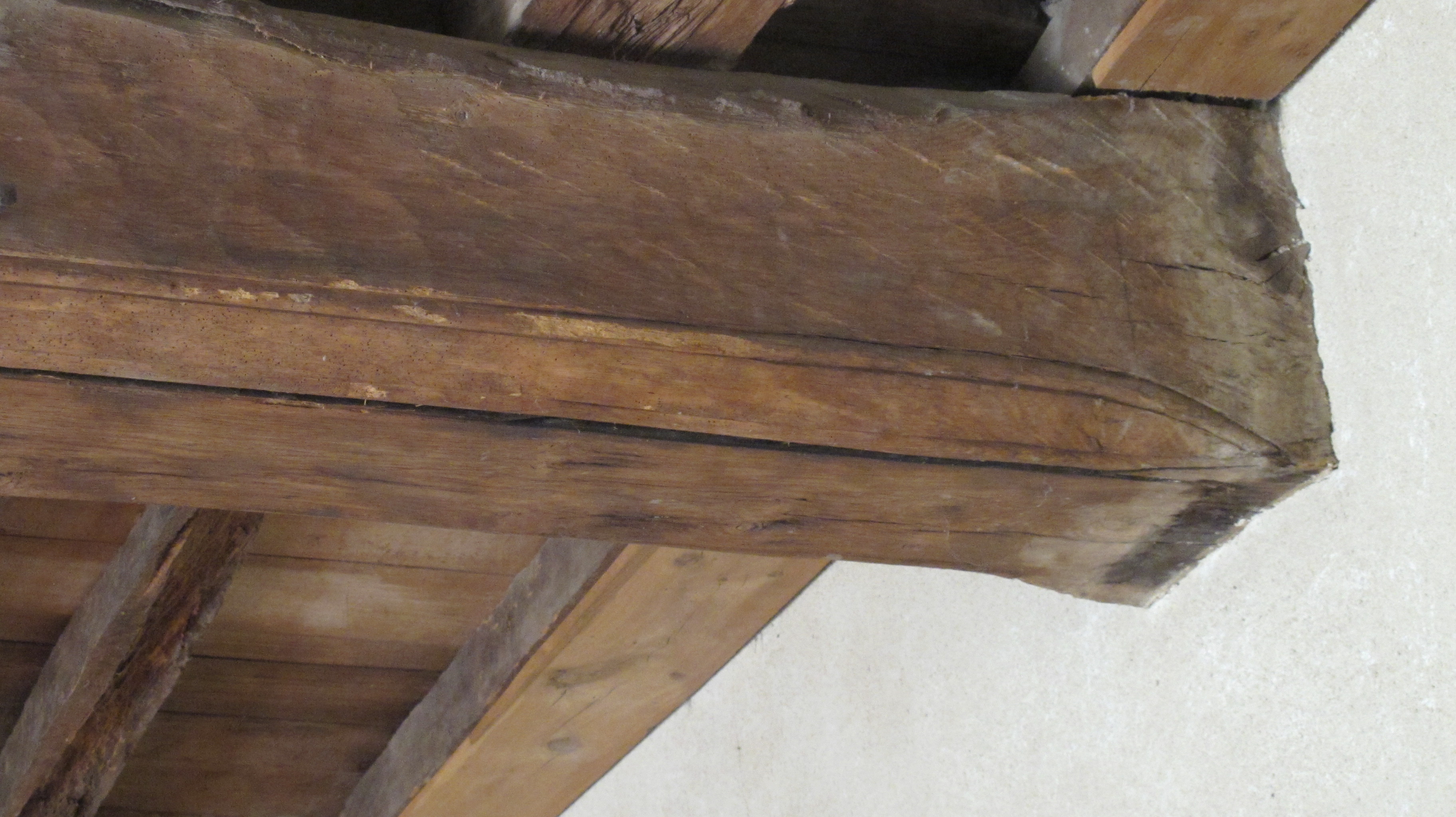 Poutre de forte section a chanfrein mouluré du 16e siècleImmatriculation