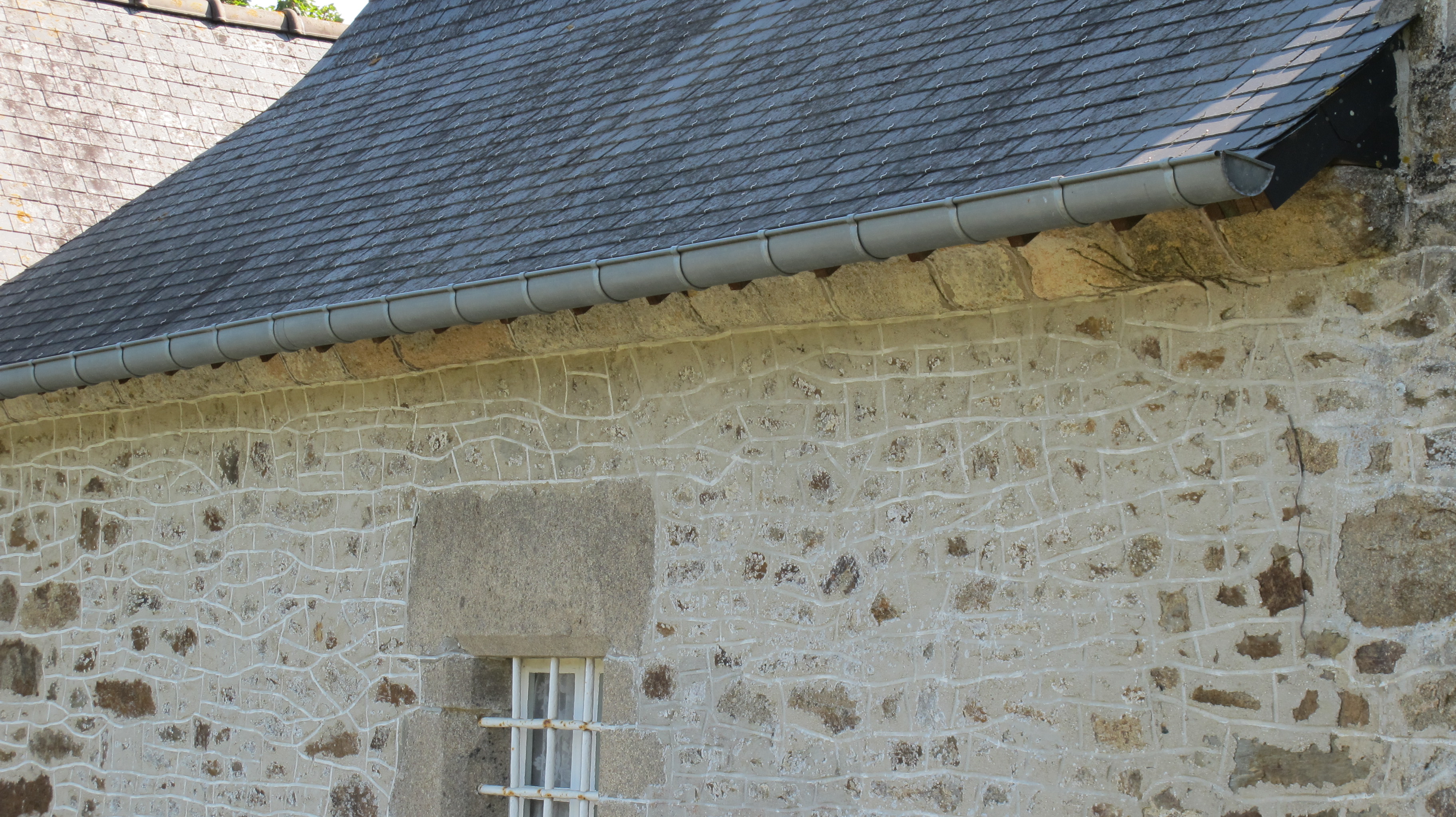 Pavillon, vue arrière, détail : cornche en pierre des falunsImmatriculation