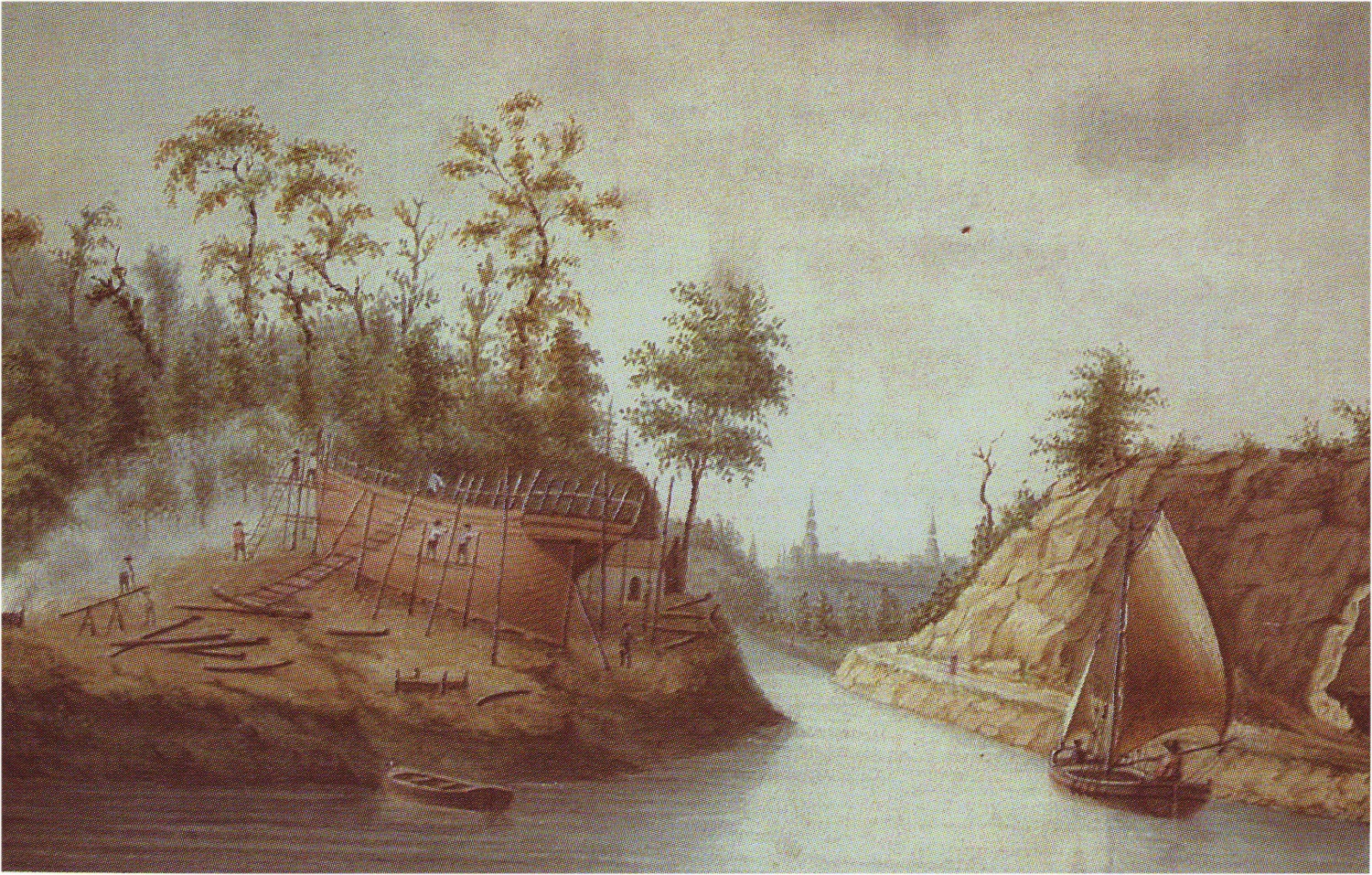 Chantier naval à la Courbure. Victor Aubry. Dessin à la plume et aquarelle, 1835 ( reproduction). (Archives privées)Immatriculation