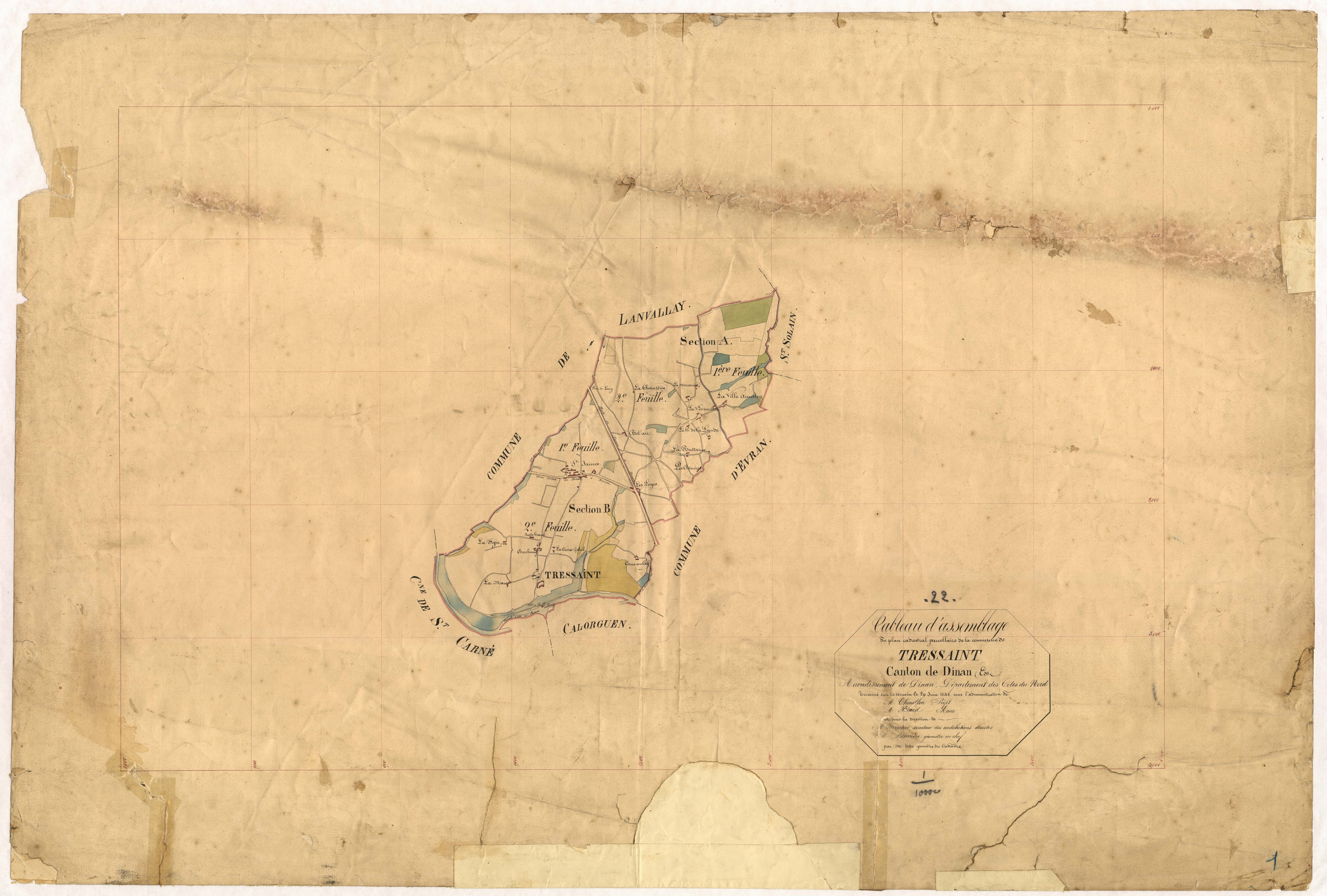 tableau d'asemblage de 1844, Tresaint (AD des Côtes d'Armor : 3P374)Immatriculation