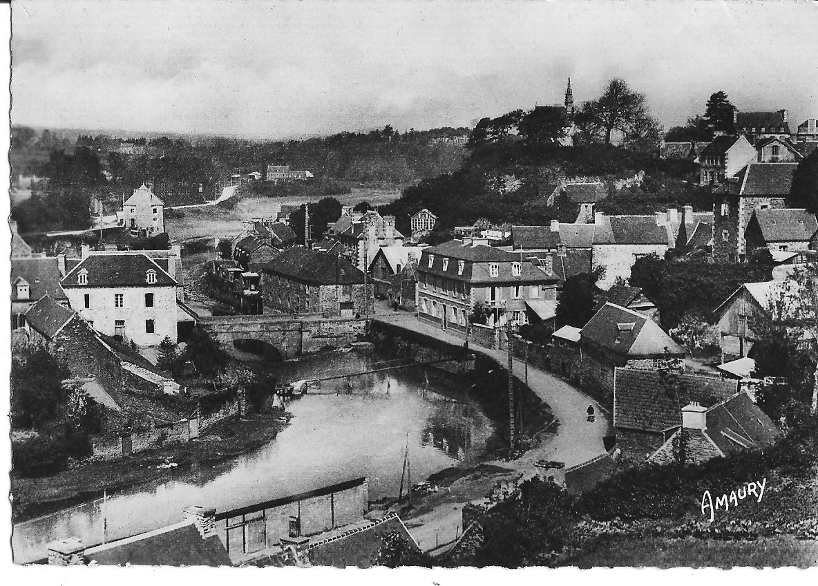 Le bas de la rue de la rive et le Vieux Pont. Carte postale ancienne, début du 20e siècle (collection particulière Georges Le Fell)Immatriculation