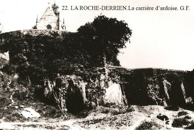 Ancienne carrière d'ardoise au pied de l'ancien donjon. Carte postale ancienne, début 20e siècle (collection particulière Georges Le Fell)Immatriculation