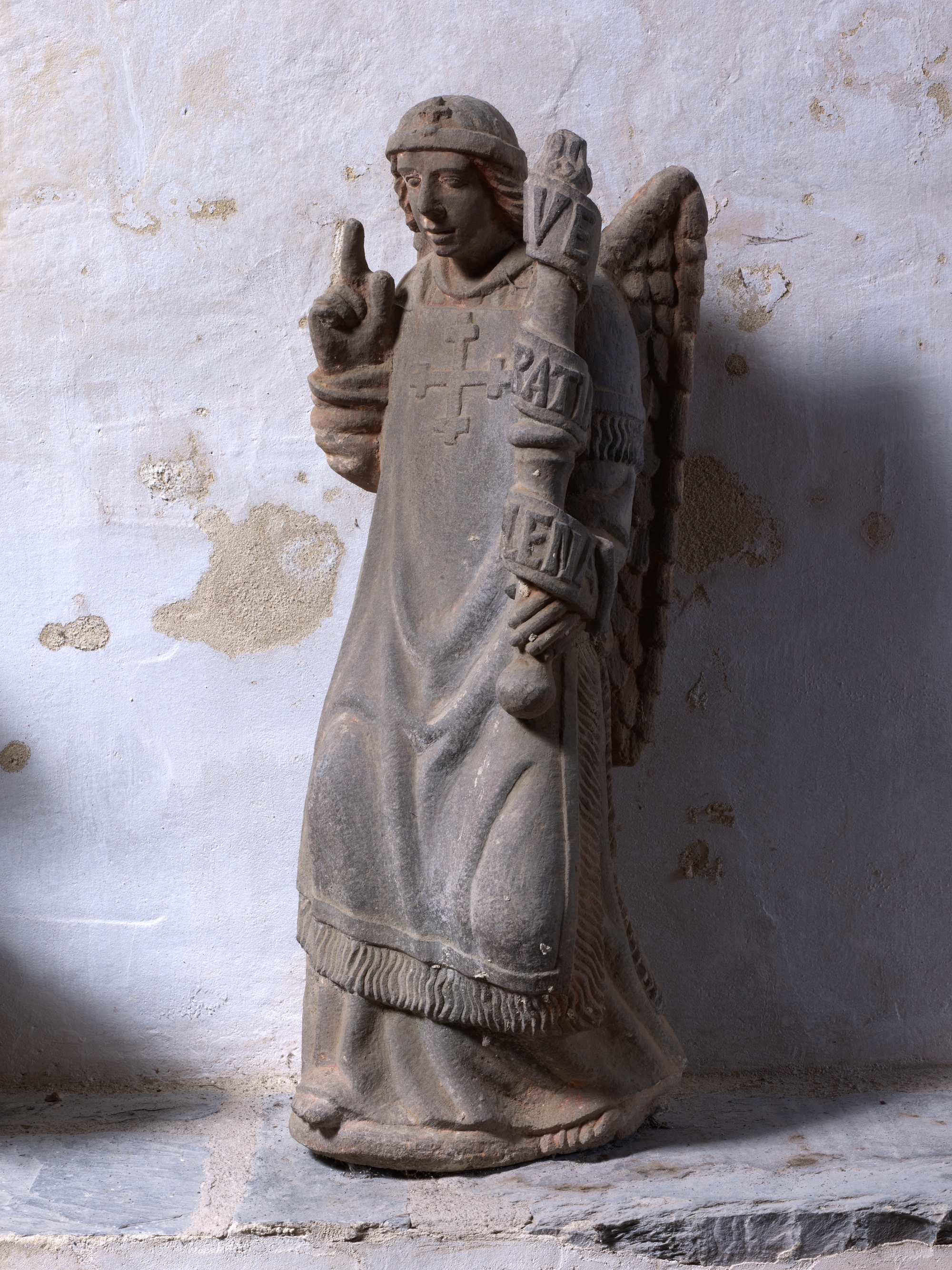 Scène de l'Annonciation, Archange Gabriel, 16e siècle (kersanton ; 2010/10/25 CMH)Immatriculation